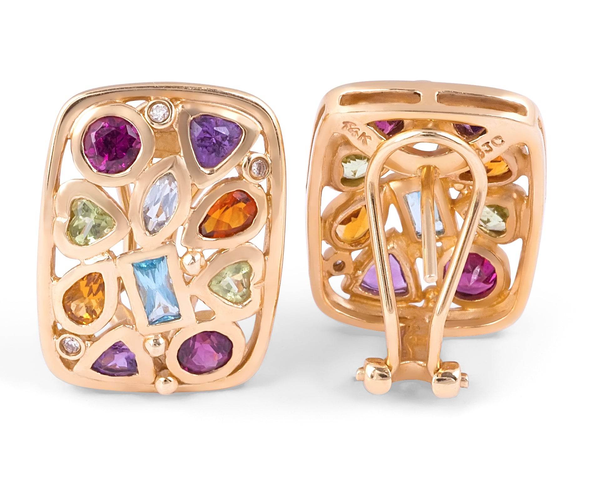 Modern and delicate, this updated gemstone bar diamond earring is the perfect accessory. Forged in 14 Karat Yellow gold, it is sure to impress.