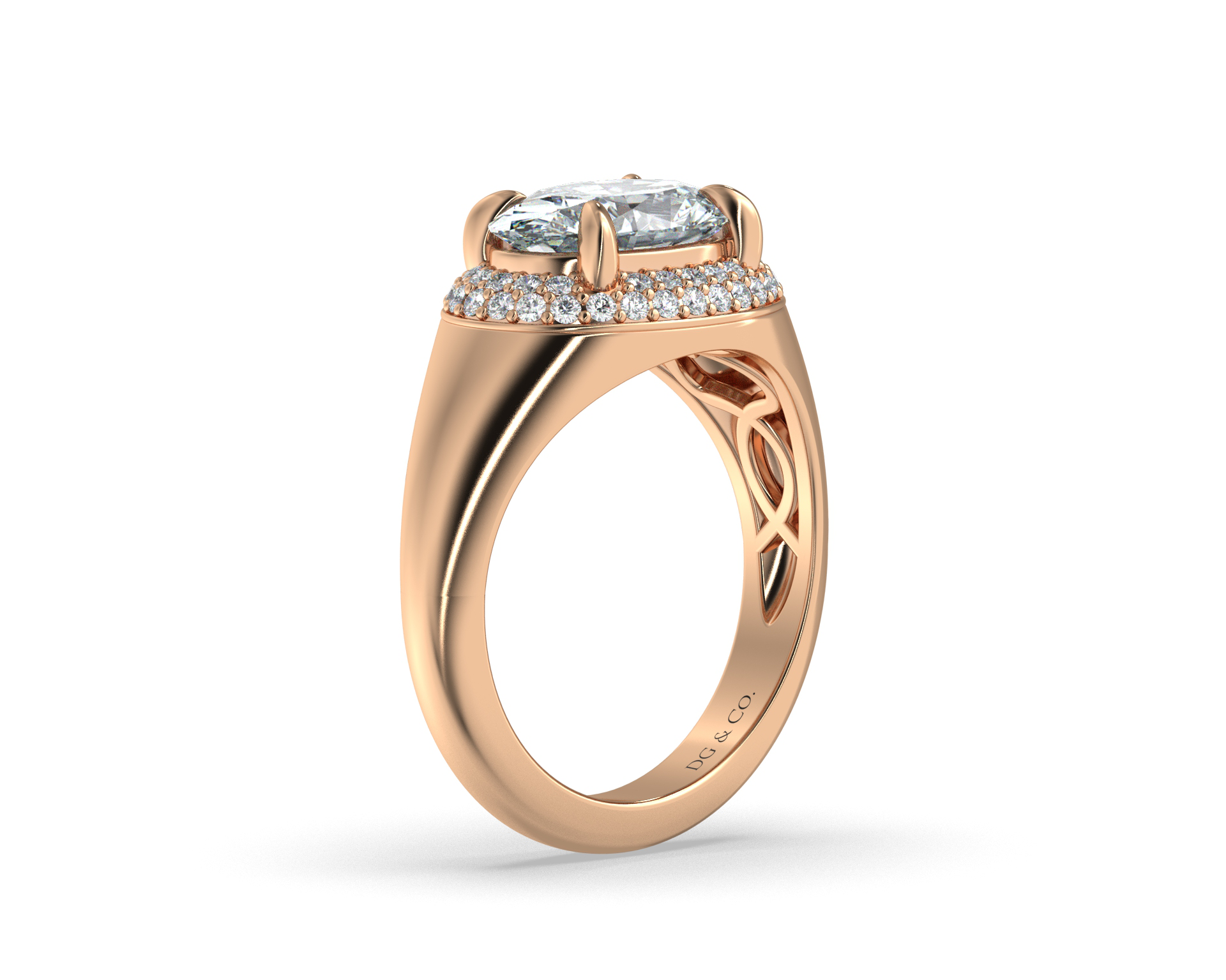 Fall in love with this simple yet stunning east west halo ring. It's crafted with oval diamond
