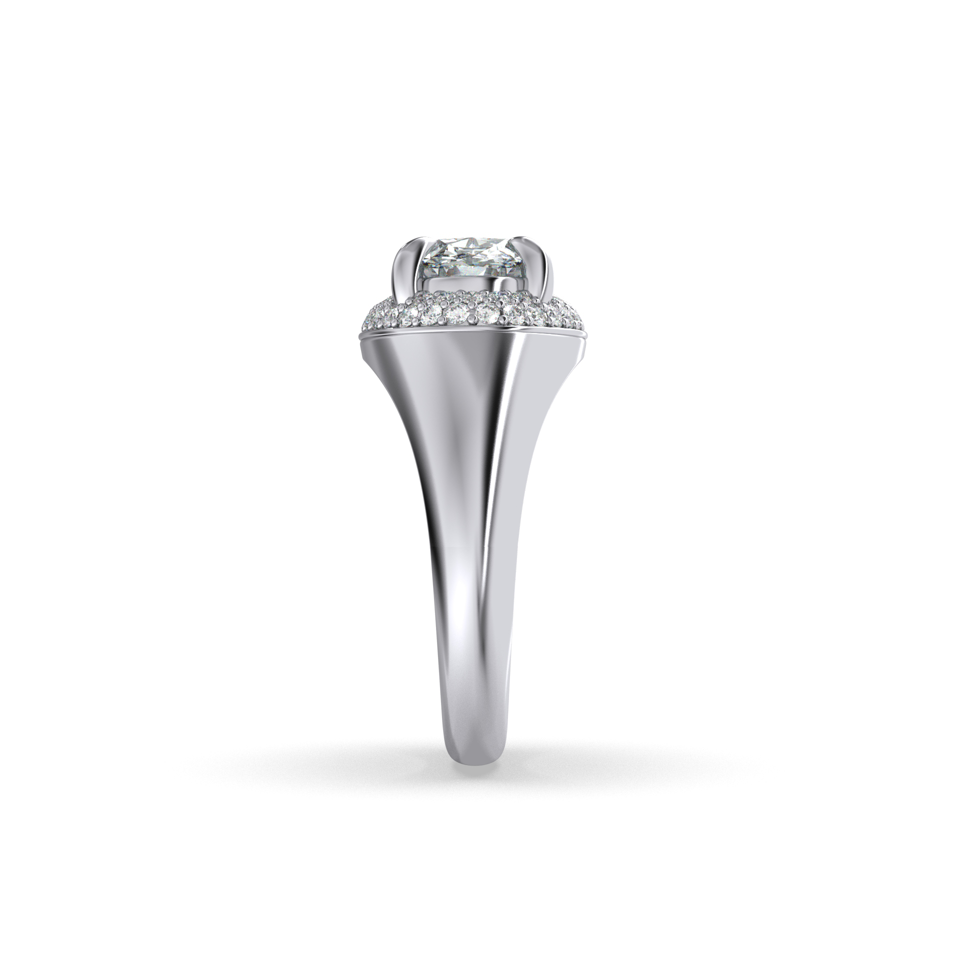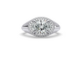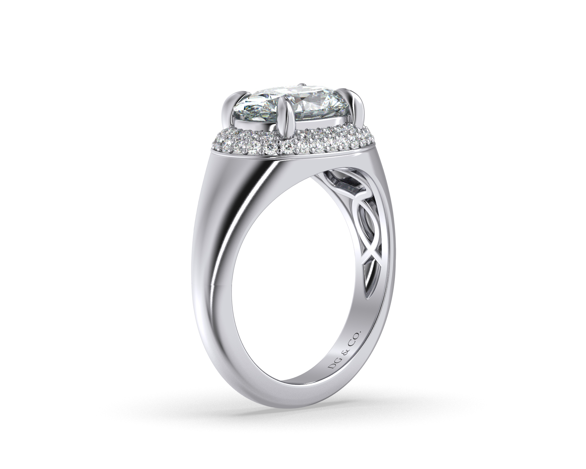 Fall in love with this simple yet stunning east west halo ring. It's crafted with oval diamond