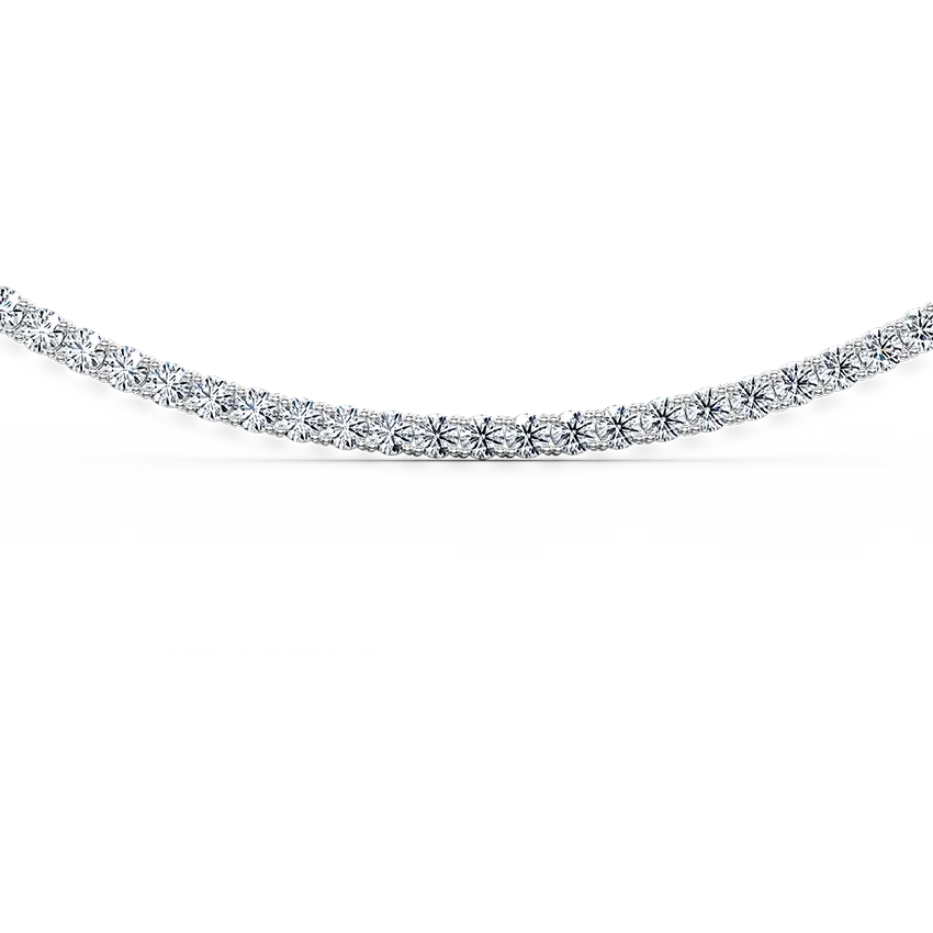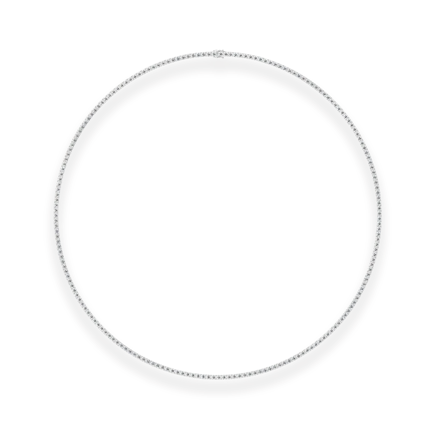 Flash your brilliant style with this infinitely wearable classic. This lab grown diamond tennis necklace features round-cut diamonds in a secure four-claw setting, exuding timeless sophistication and sparkle. Designed for everyday elegance or special occasions, it fastens with a durable box clasp and safety catch for added security.