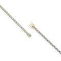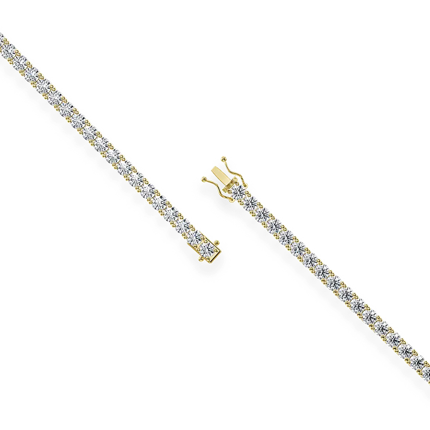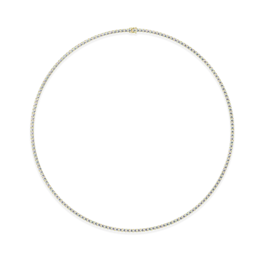 Flash your brilliant style with an infinitely wearable classic. This lab grown diamond tennis necklace showcases a continuous line of dazzling round-cut diamonds, each securely held in an elegant four-claw setting. A timeless statement of sophistication, this all-occasion dazzler fastens securely with a box clasp featuring a double safety for added peace of mind.