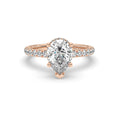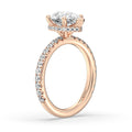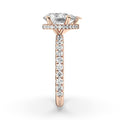Born from the love you and your beloved share, this engagement ring reveals its enduring sparkle with round pave set diamonds set in the band with a hidden halo framing the center stone that stands out against its clean lines.