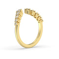 Open curved design and brilliant diamonds make this chevron ring the perfect piece for stacking. Pair it with an engagement ring or wear it in a fashion ring stack. This ring is a timeless accessory.