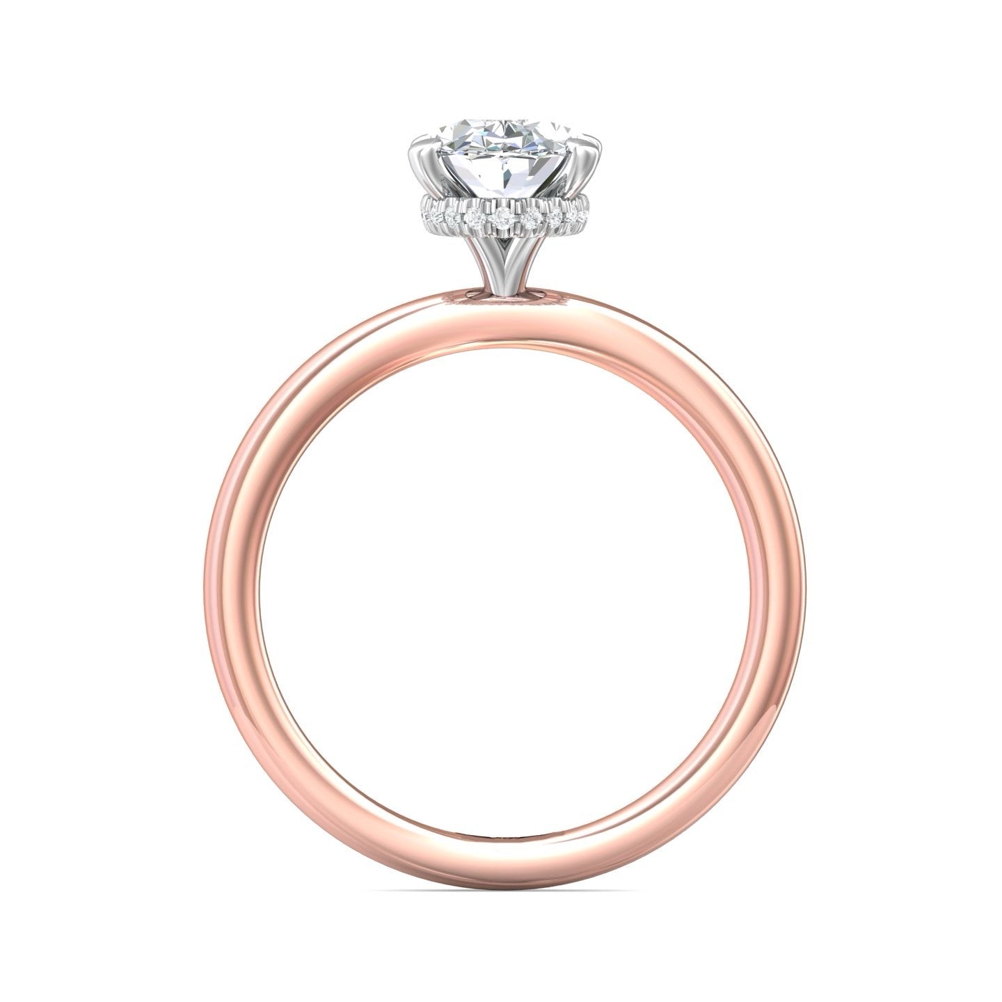 Four prongs of luxe put your precious diamond center stone on display while a hidden choker of pavé diamonds adds sparkle from every angle.