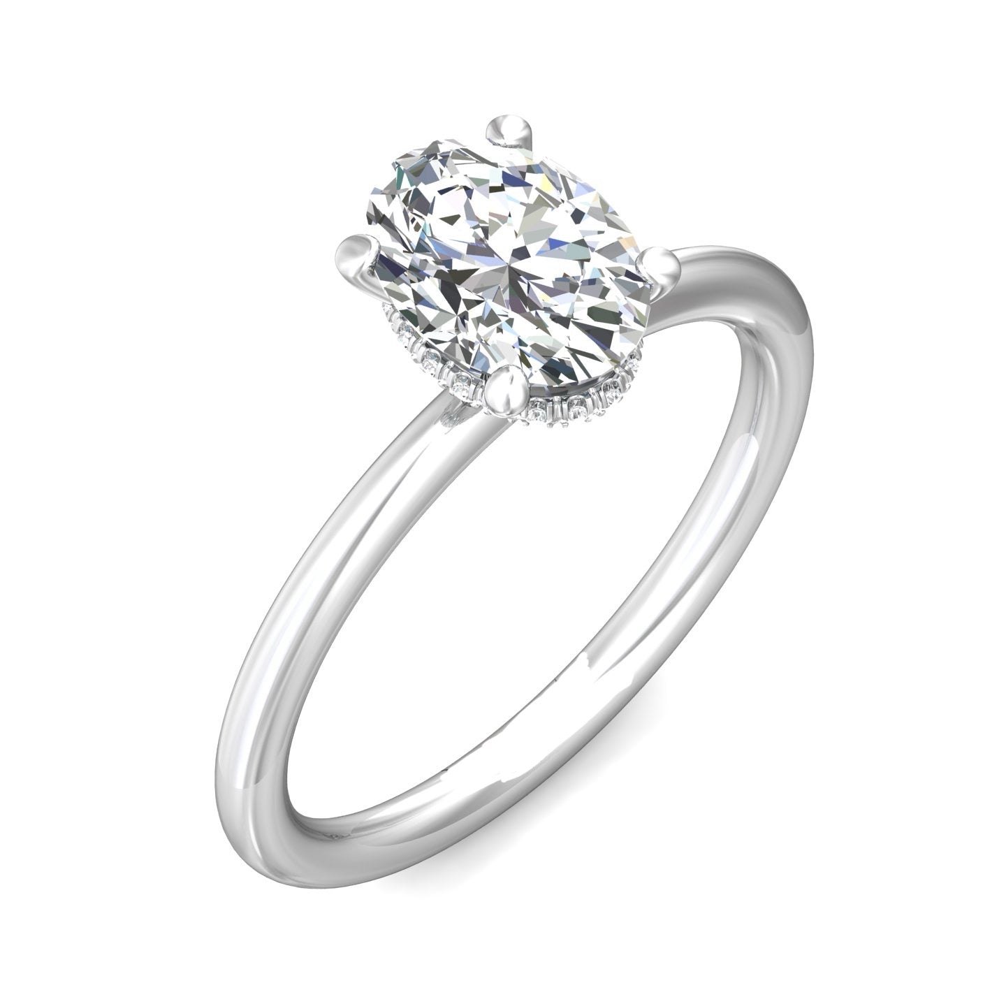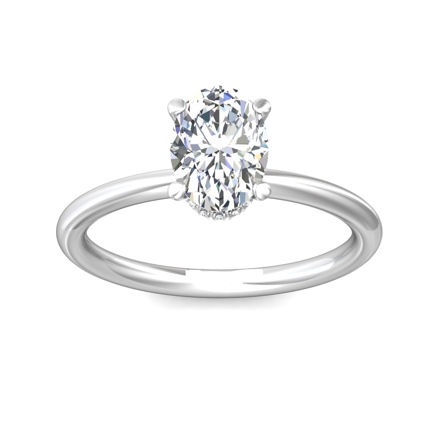 Four prongs of luxe put your precious diamond center stone on display while a hidden choker of pavé diamonds adds sparkle from every angle.