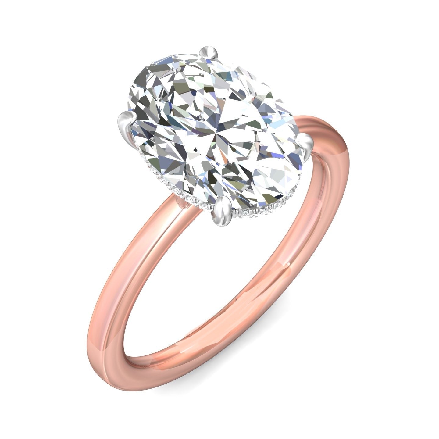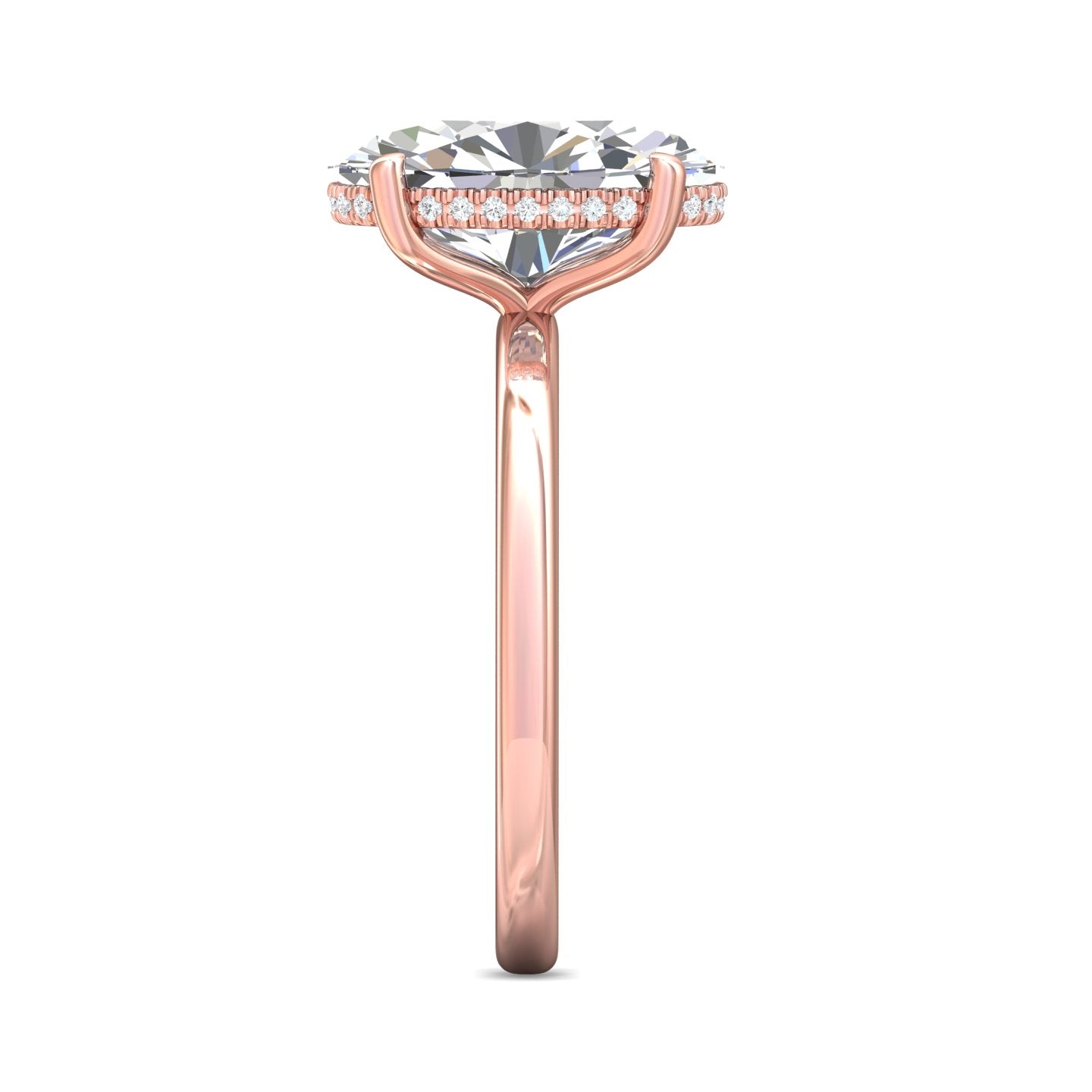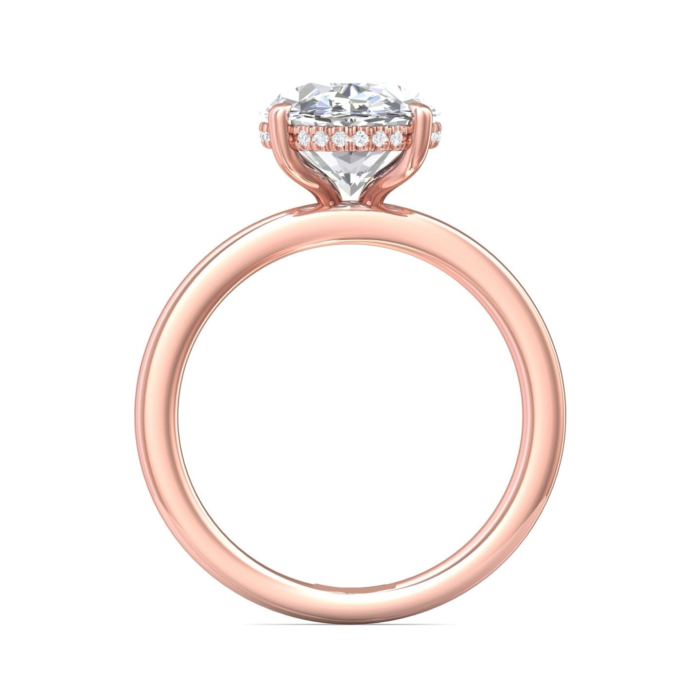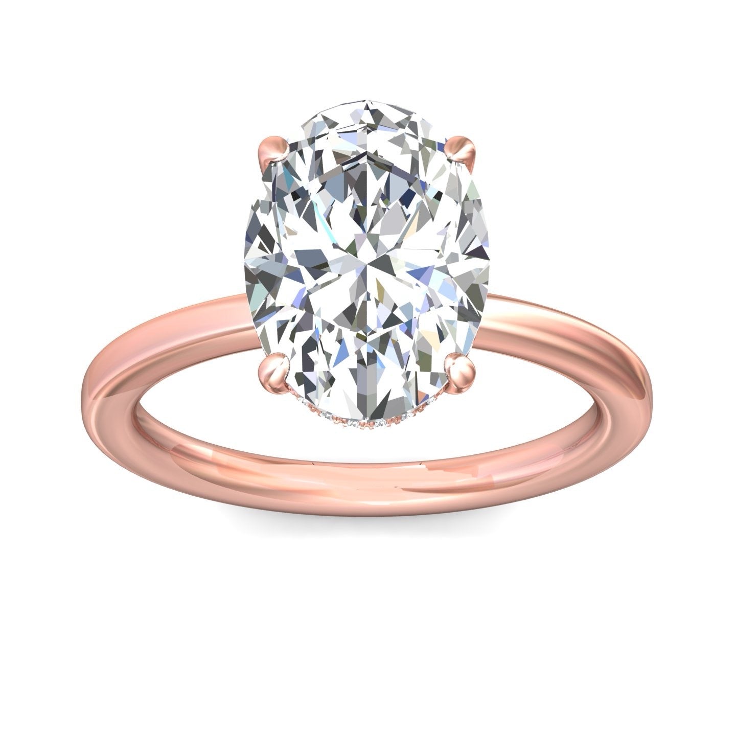 Beautifully crafted, this DG & Co. Diamond engagement ring low setting features a pavé-set diamond hidden halo adorning the oval centre diamond of your choice.