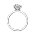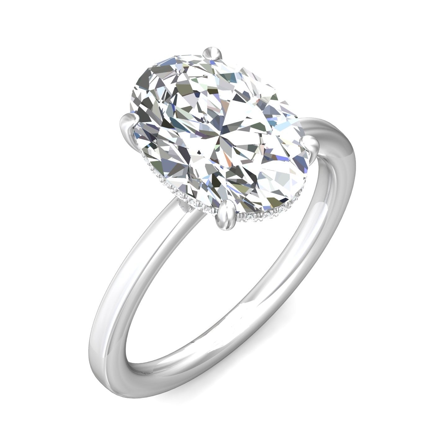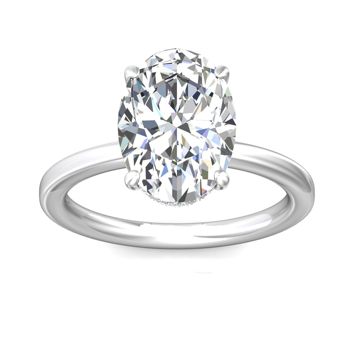 Beautifully crafted, this DG & Co. Diamond engagement ring low setting features a pavé-set diamond hidden halo adorning the oval centre diamond of your choice.