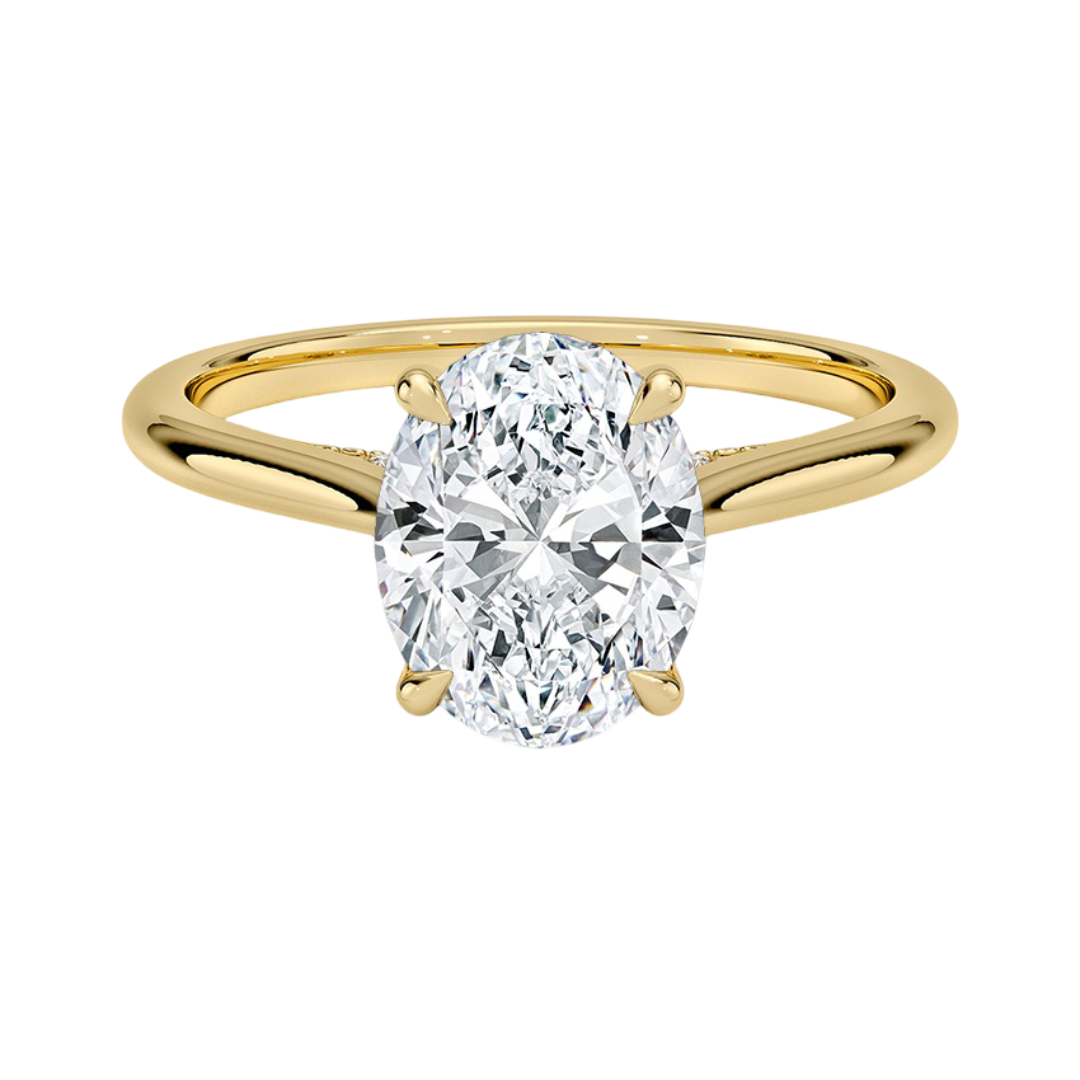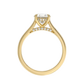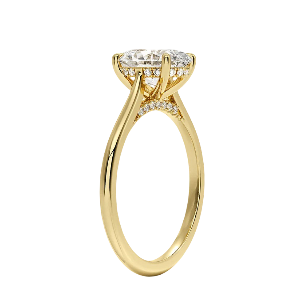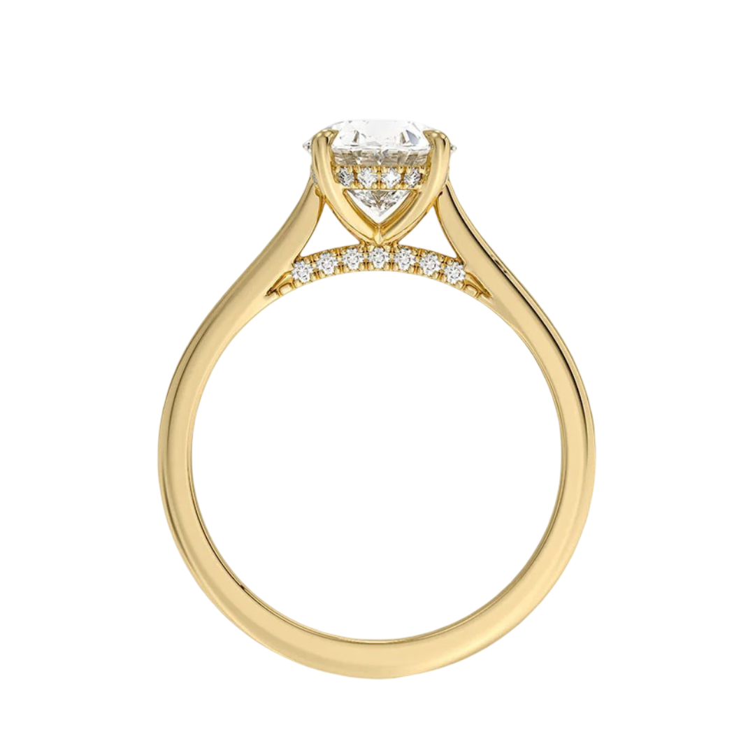 Classic from a bird's-eye view, this solitaire diamond engagement ring has a delicate diamond profile and slight cathedral that puts your center stone on display.