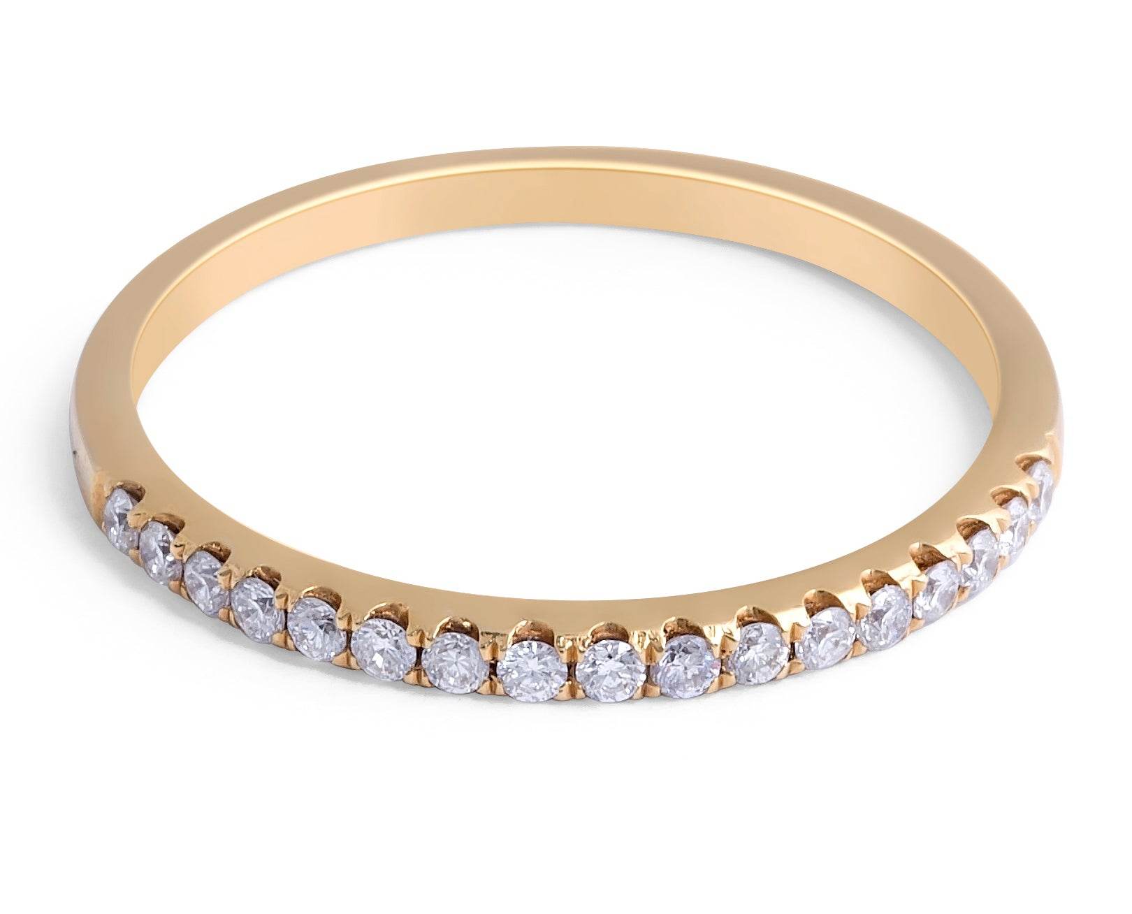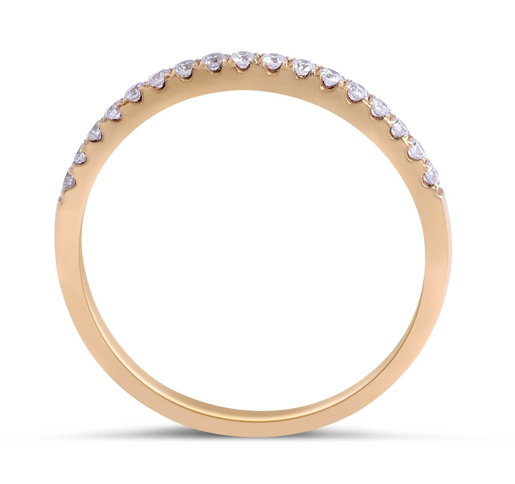 Elegant 18 Karat yellow gold diamond wedding band exquisitely set with 17 round brilliant sparkling diamonds in a classic fine claw setting. The fine delicate slim band gives the ring a timeless finish.