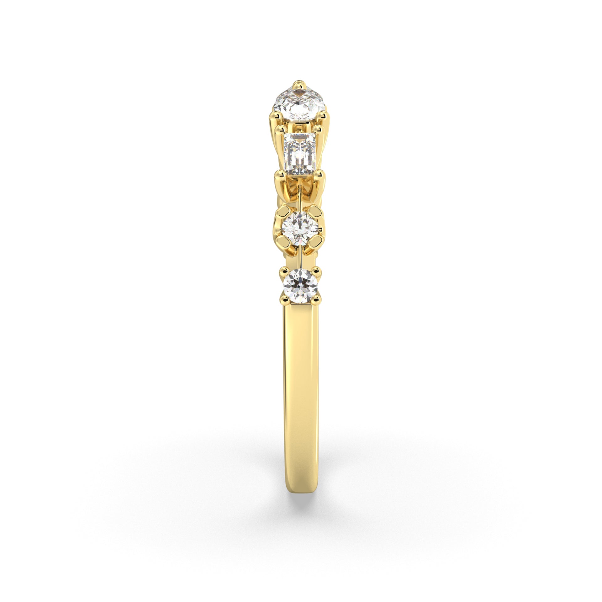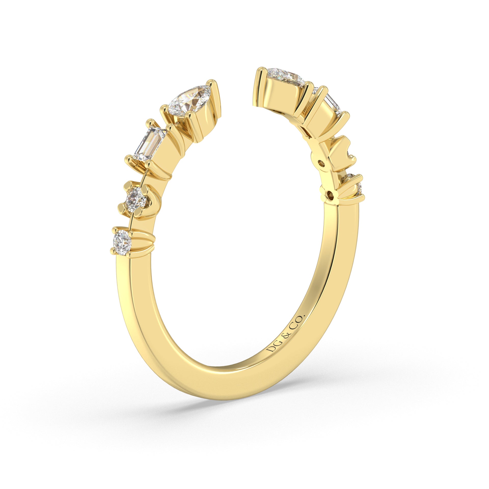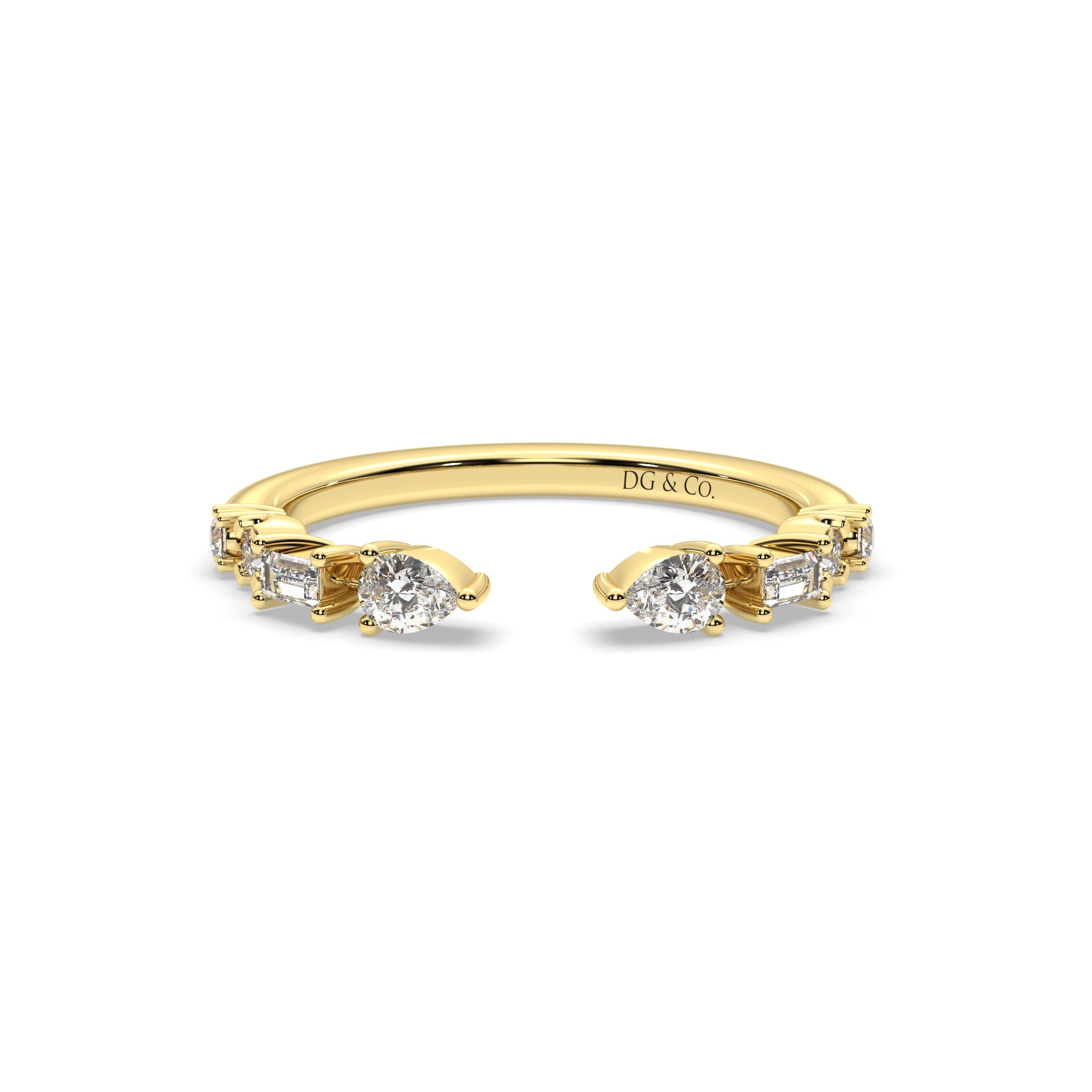 With an open band design, this pear baguette and round ring is perfect for stacking. Wear it in a wedding set or with your favorite fashion rings.