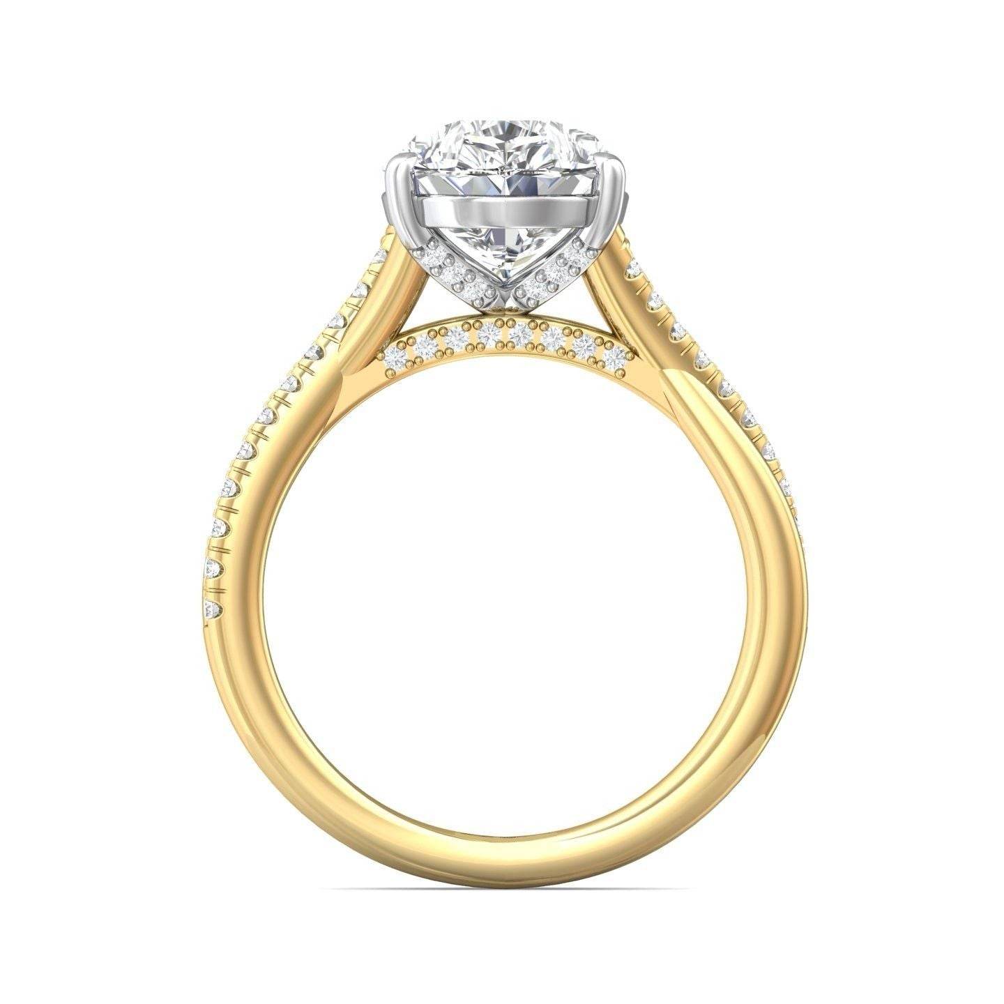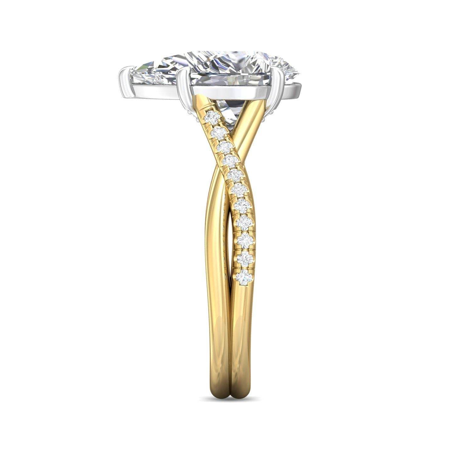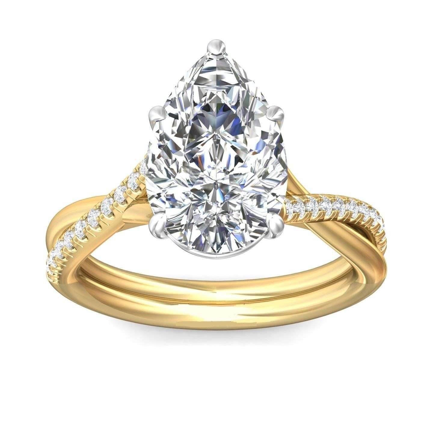 Pear Shape Cross over Double Band Pave Setting Diamond Ring 6 Claw Setting - 18K Yellow - DG & Co. Jewellery