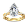 Pear Shape Cross over Double Band Pave Setting Diamond Ring 6 Claw Setting - 18K Yellow