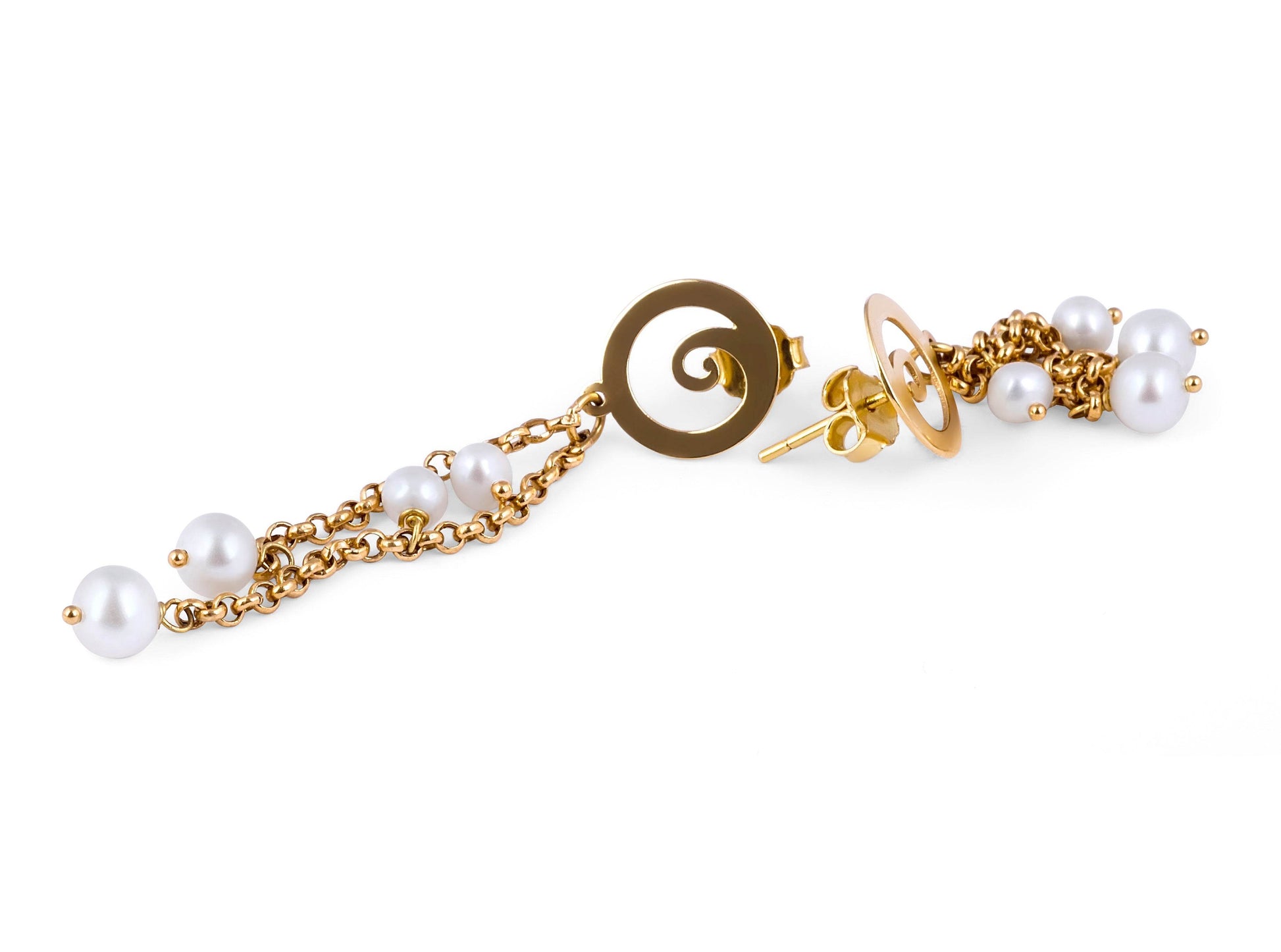 Inspired by modern appeal, these sophisticated pearl earrings feature freshwater cultured pearls from the Spiral collection framed in 18 Karat yellow gold.