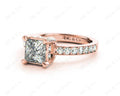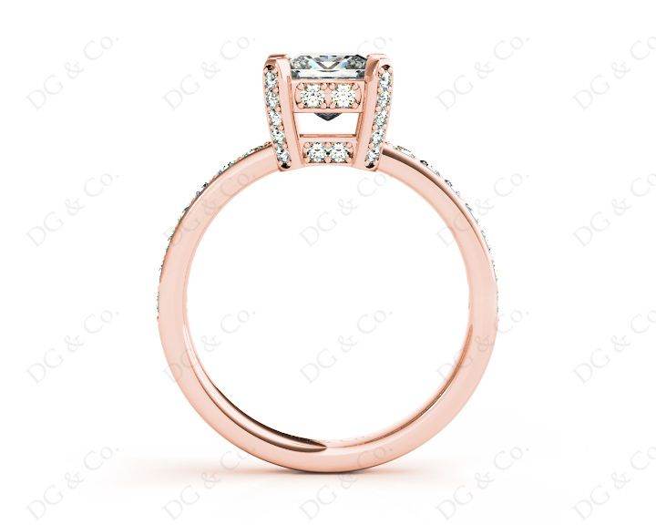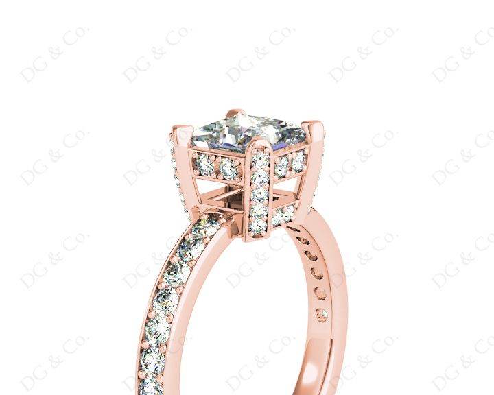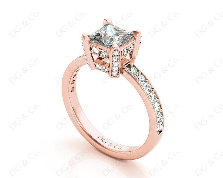 Diamond Engagement Ring with Princess Cut Diamond in Four Prongs Setting with Forty-Six Round Brilliant Channel Set in to the Prongs and Down the Shoulders.
