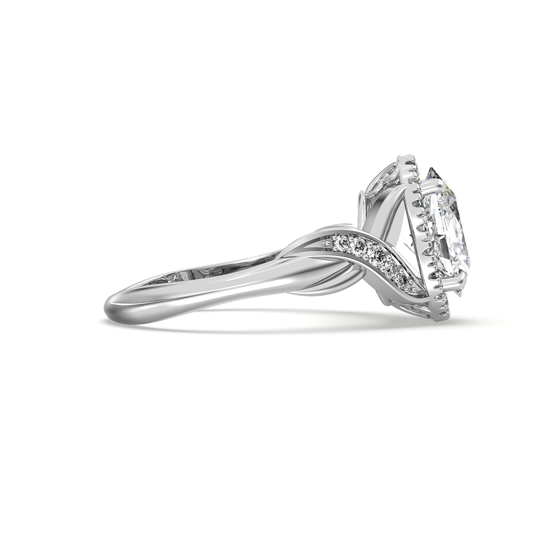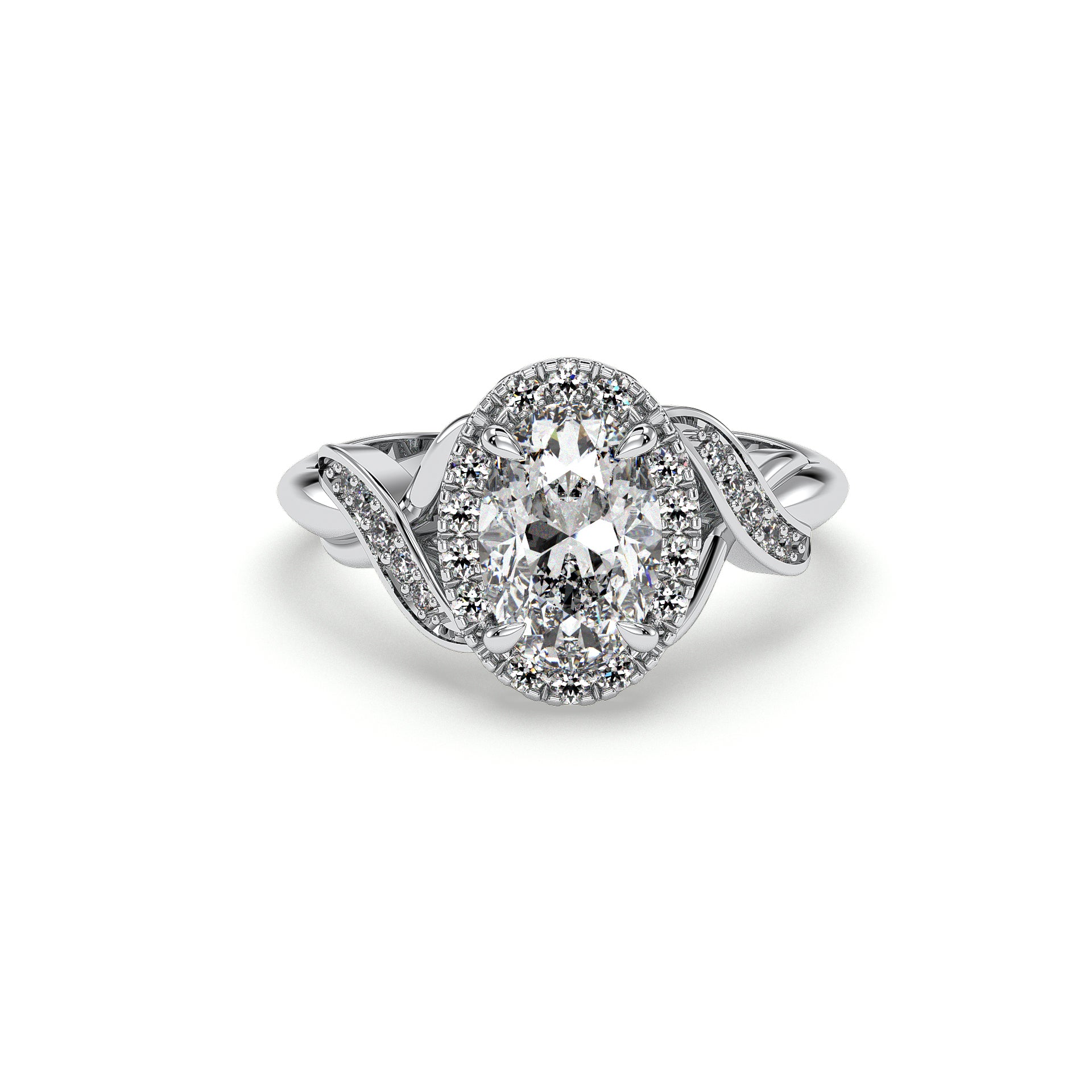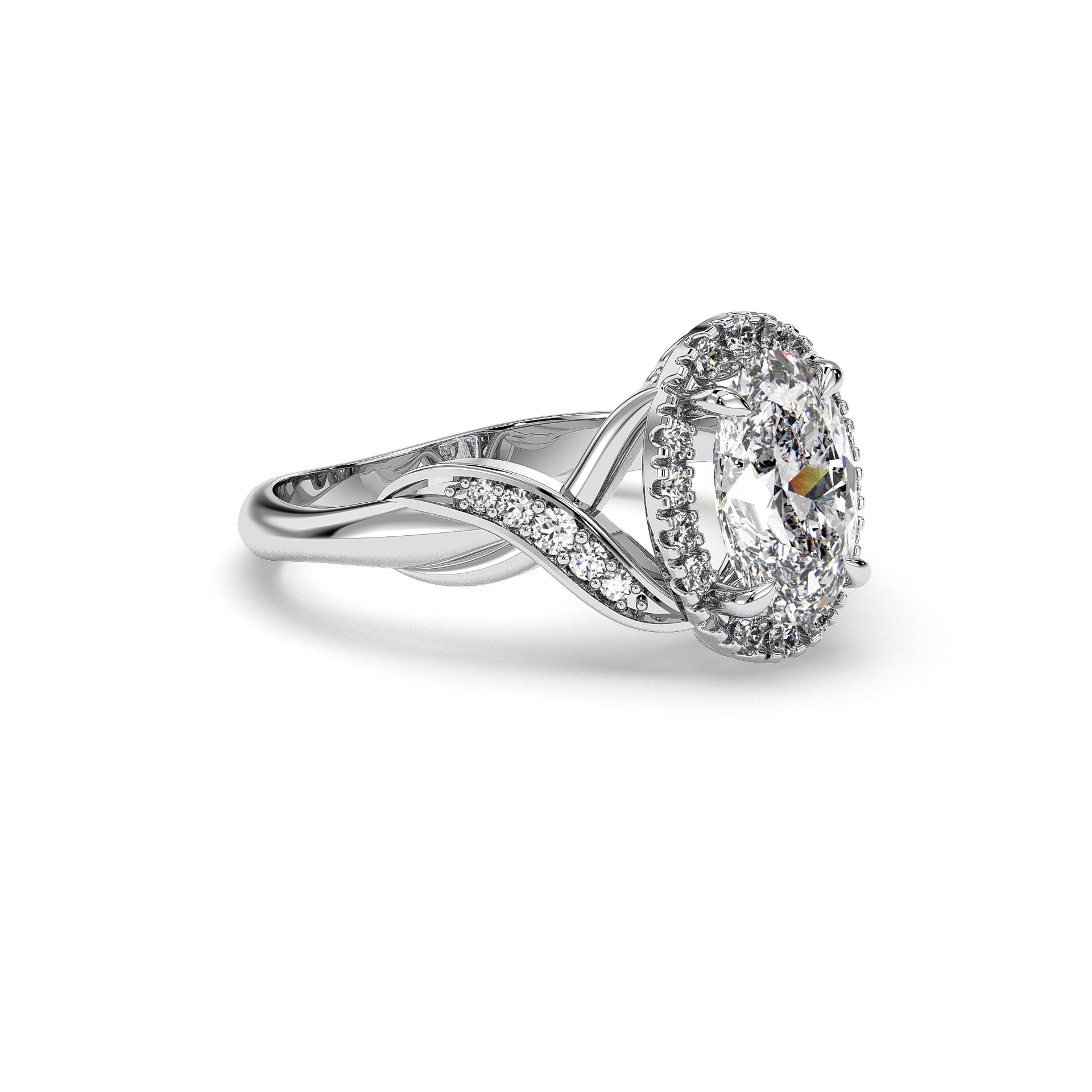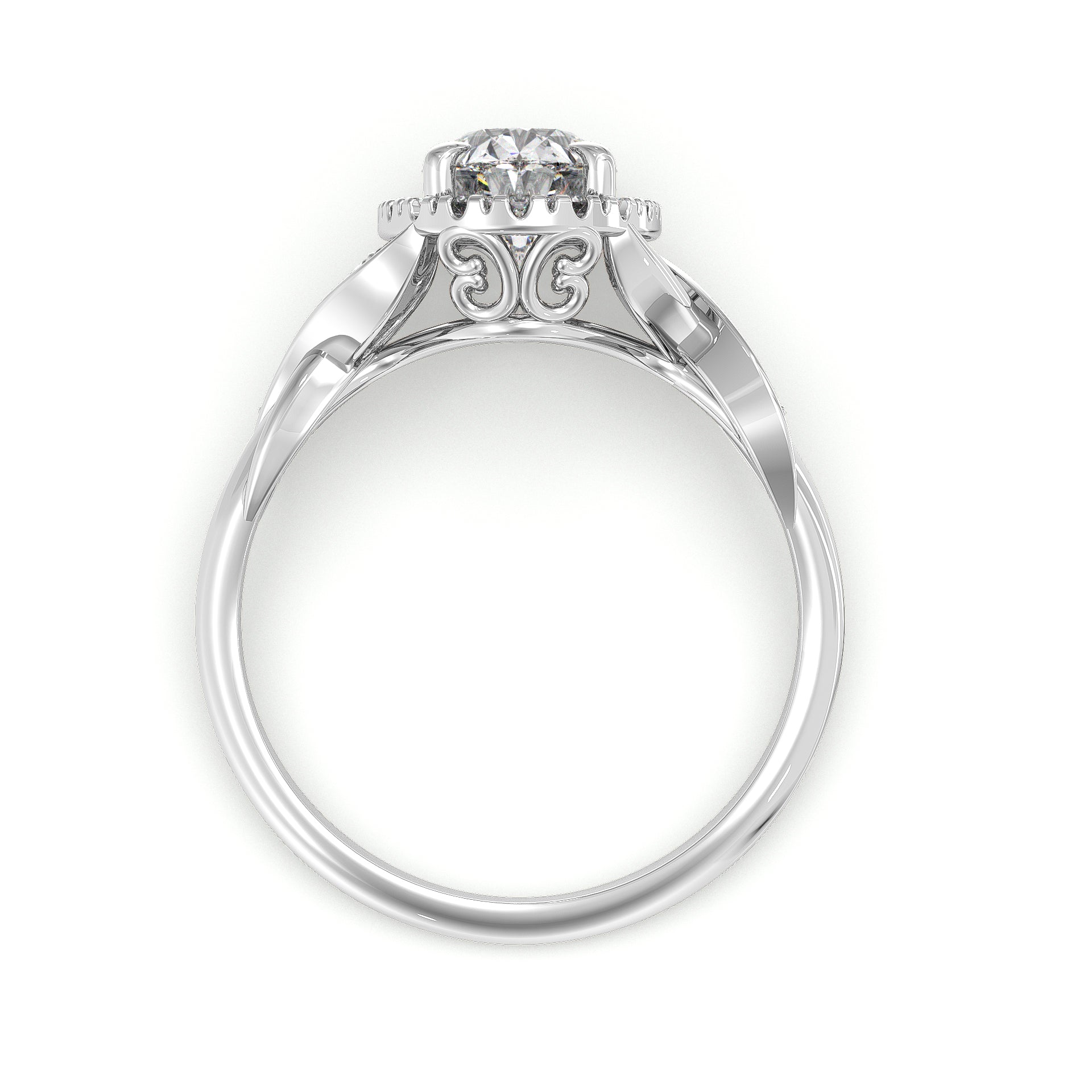 Deco-inspired, this ZAC Zac Posen diamond engagement ring has a stunning halo to frame the diamond of your choice. Twist Band detailing runs throughout, adding to the luxurious look of the style.