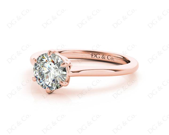 Solitaire Engagement Ring with a Round Cut Diamond in a Six Claws Setting with a Knife-edge Shoulders.