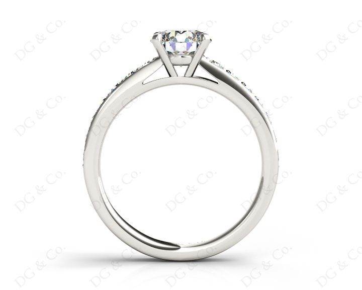Diamond Engagement Ring with a Round Cut Diamond Four Claw Set in the Centre and Twenty Round cut Diamonds Pave Setting into the Shoulders.