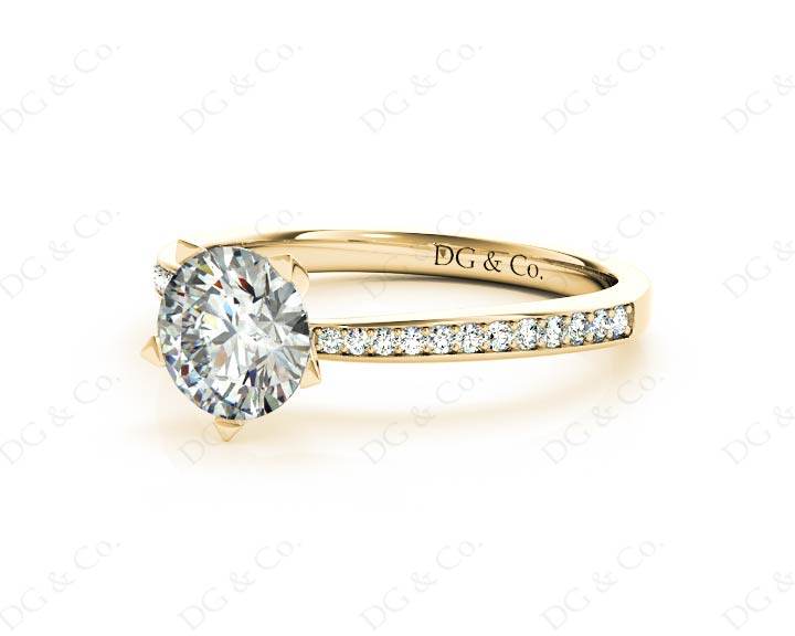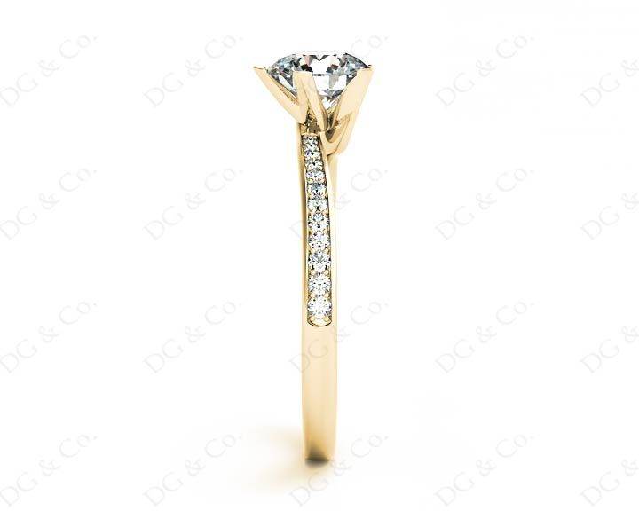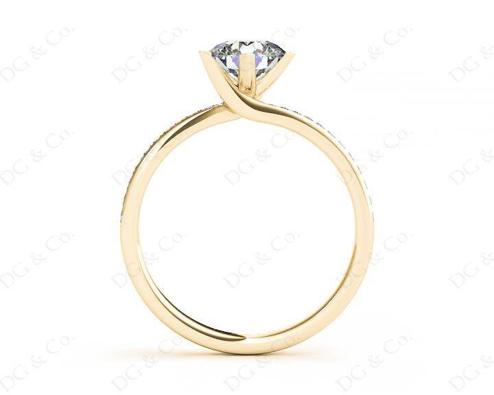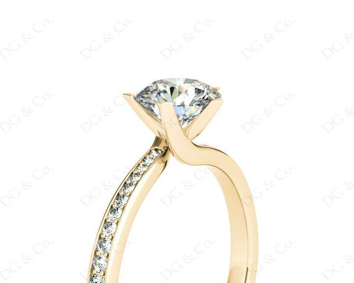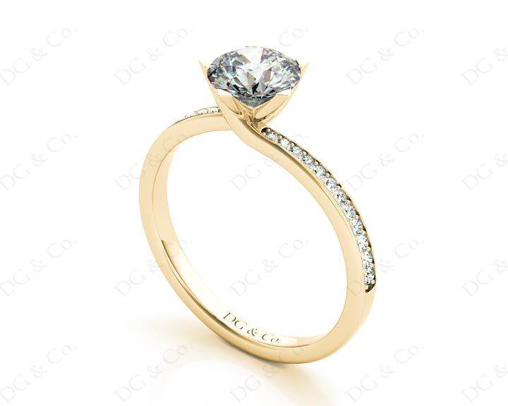 Engagement ring with a brilliant cut diamond twist band claw set in the centre and twenty-four brilliant cut diamonds grain set into the shoulders.