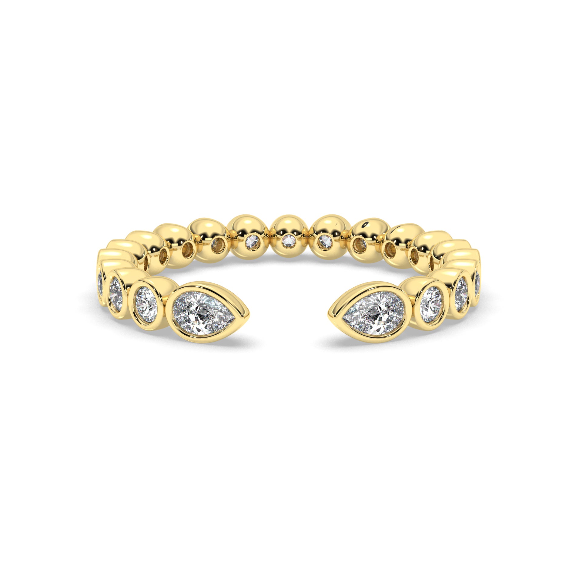 Bring a contemporary twist to your ring stack with this eternity ring designed with an infinite string of brilliant white stones in Pear cut centre bezel settings. *Number of diamonds and carat total weight will vary depending on ring size.