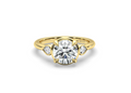 Love sparkles in this timeless engagement ring featuring a trio of accent diamonds framing the center stone setting on each side. The gleaming three stone design is artfully crafted for a look of timeless sophistication.
