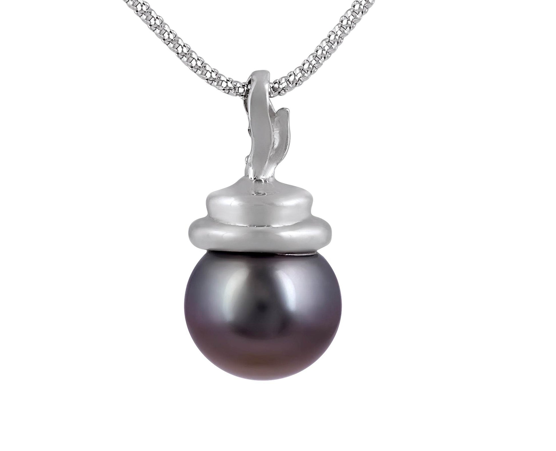 The lustre of this black Tahitian cultured pearl provides a beautiful contrast to its 18 karat white gold bail.