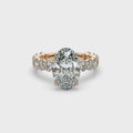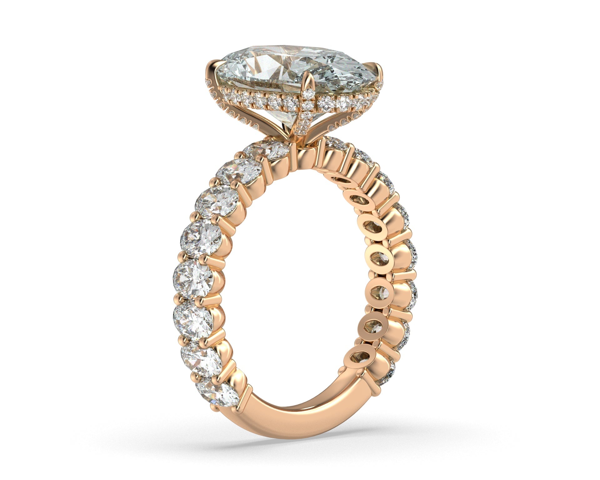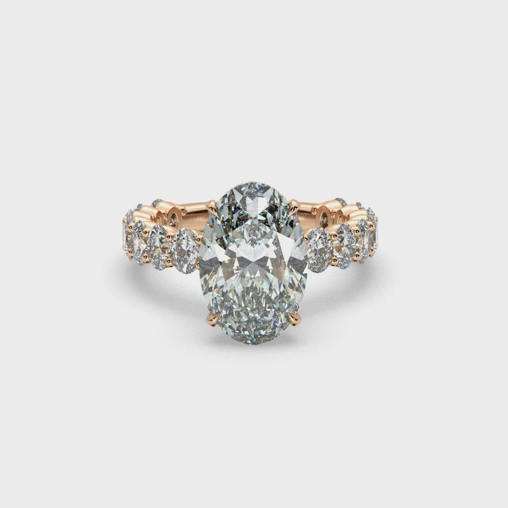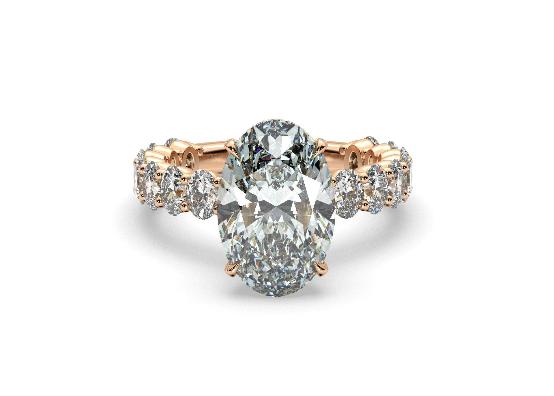 A Gleaming Oval Cut Setting holds a shimmering array of eight oval cut accent diamonds along the sides of this dreamy engagement ring, giving it a U-shaped profile that dazzles in the light.