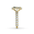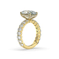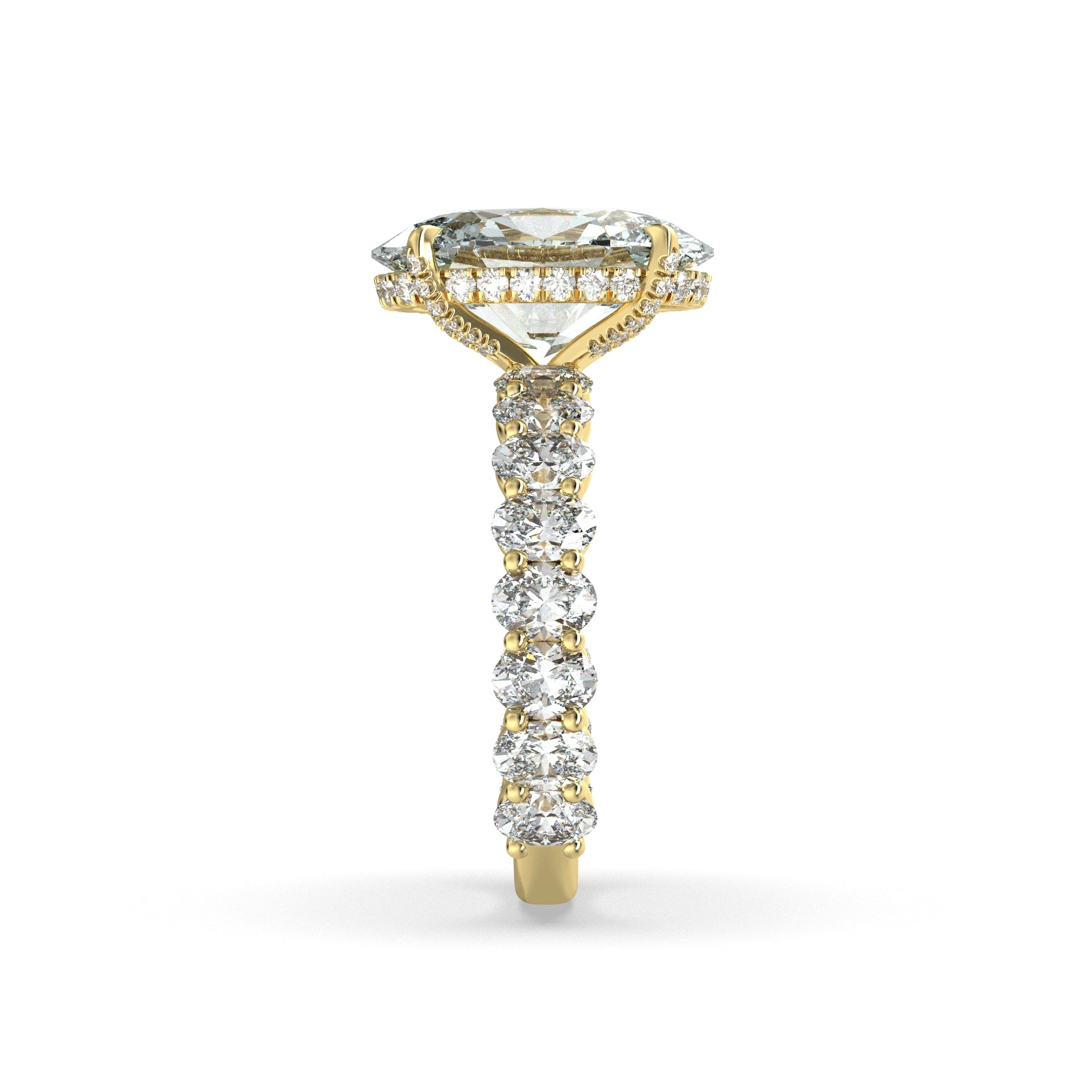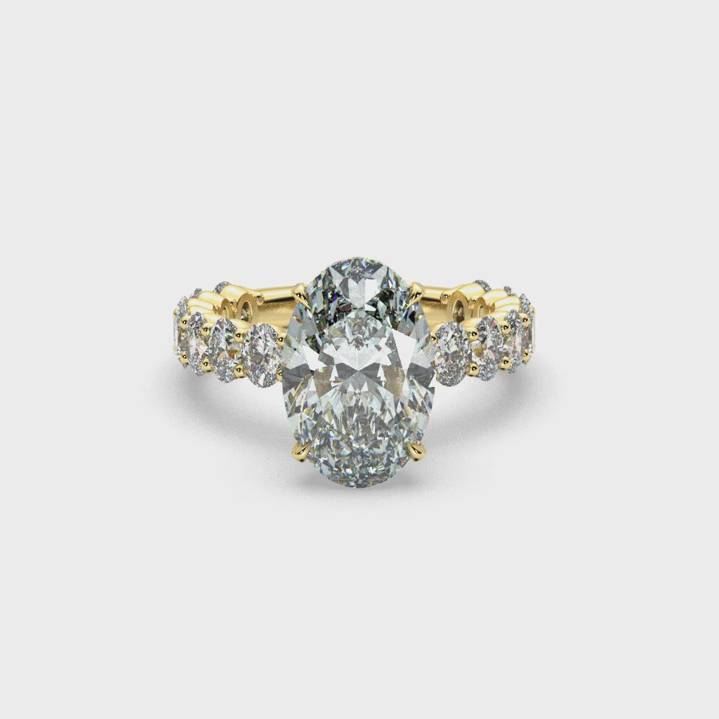 A Gleaming Oval Cut Setting holds a shimmering array of eight oval cut accent diamonds along the sides of this dreamy engagement ring, giving it a U-shaped profile that dazzles in the light.