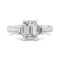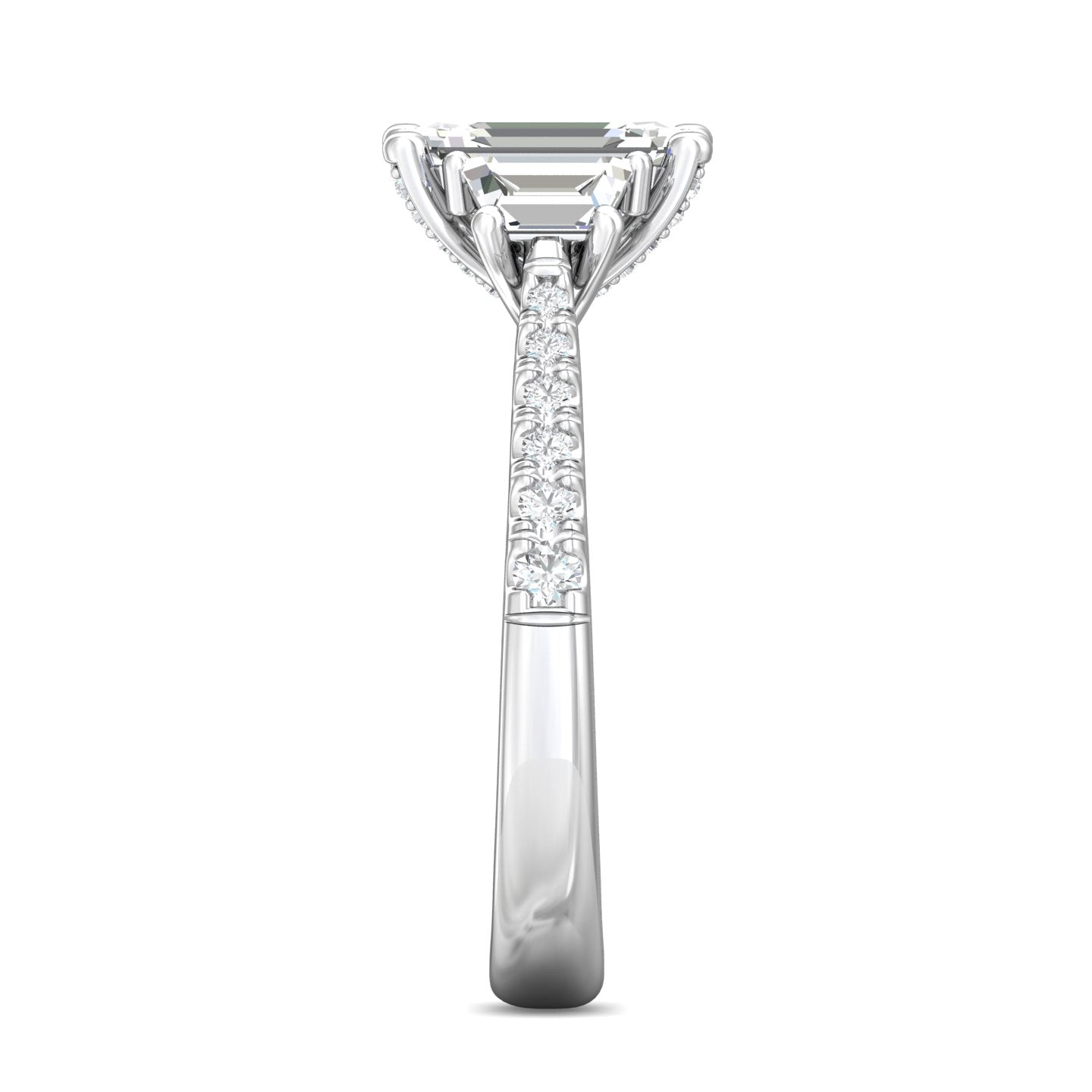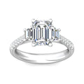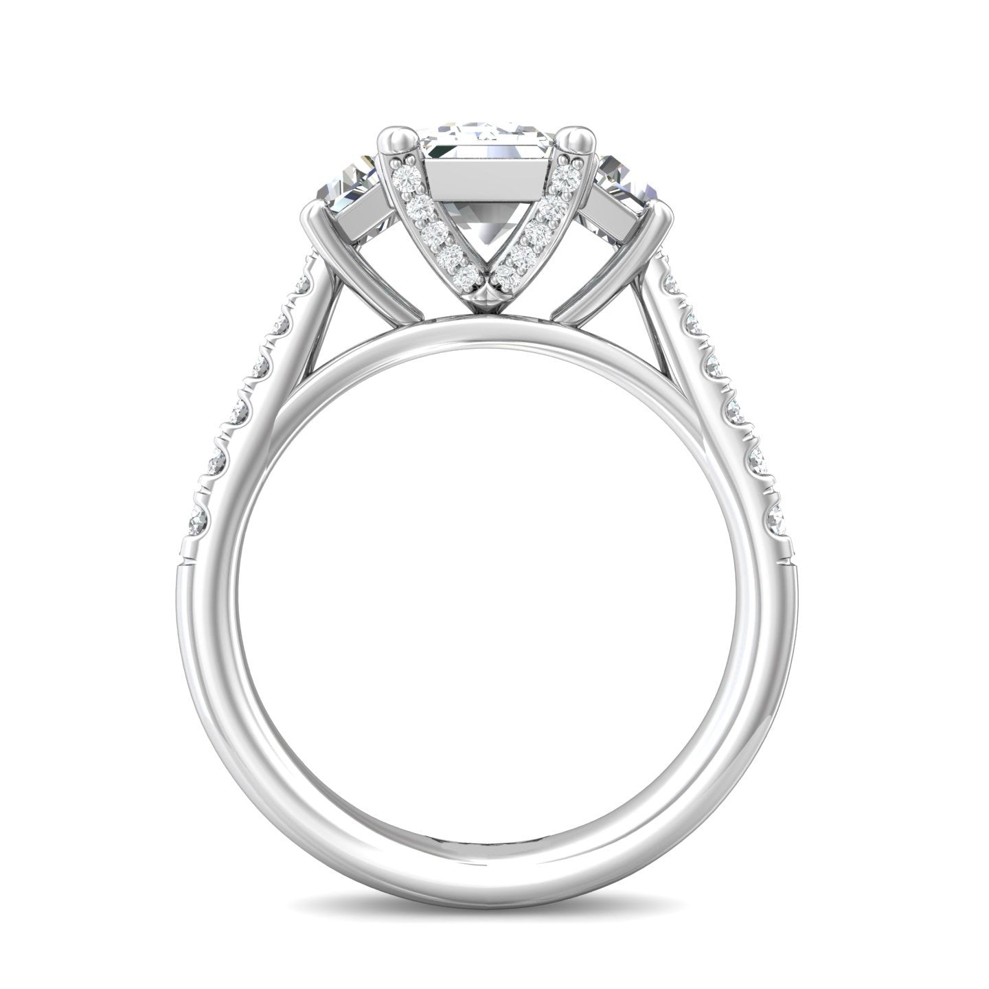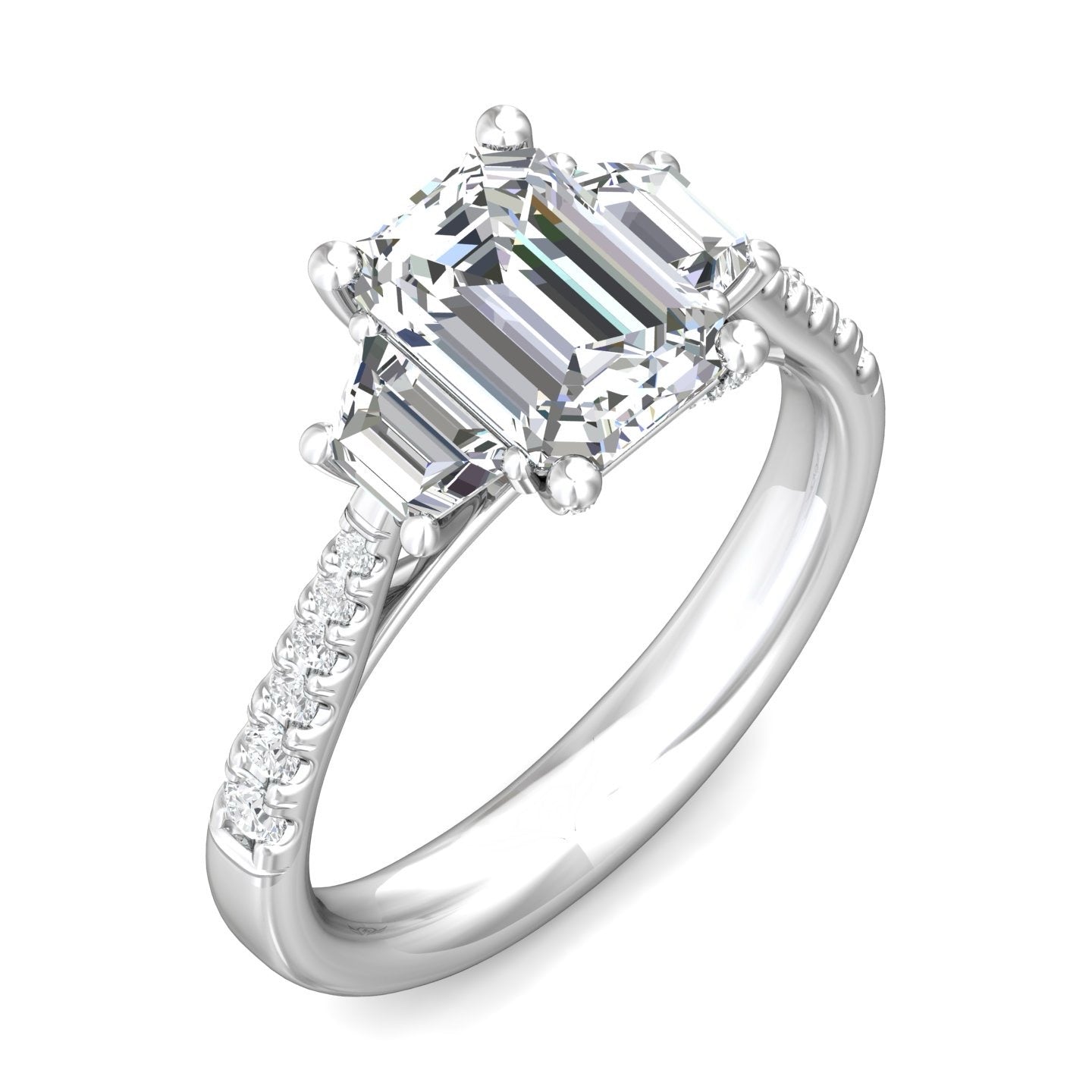Brilliance defined. A pair of trapezoid side diamonds frame the emerald-cut centre stone in this timeless and breathtaking platinum engagement ring.