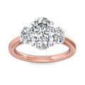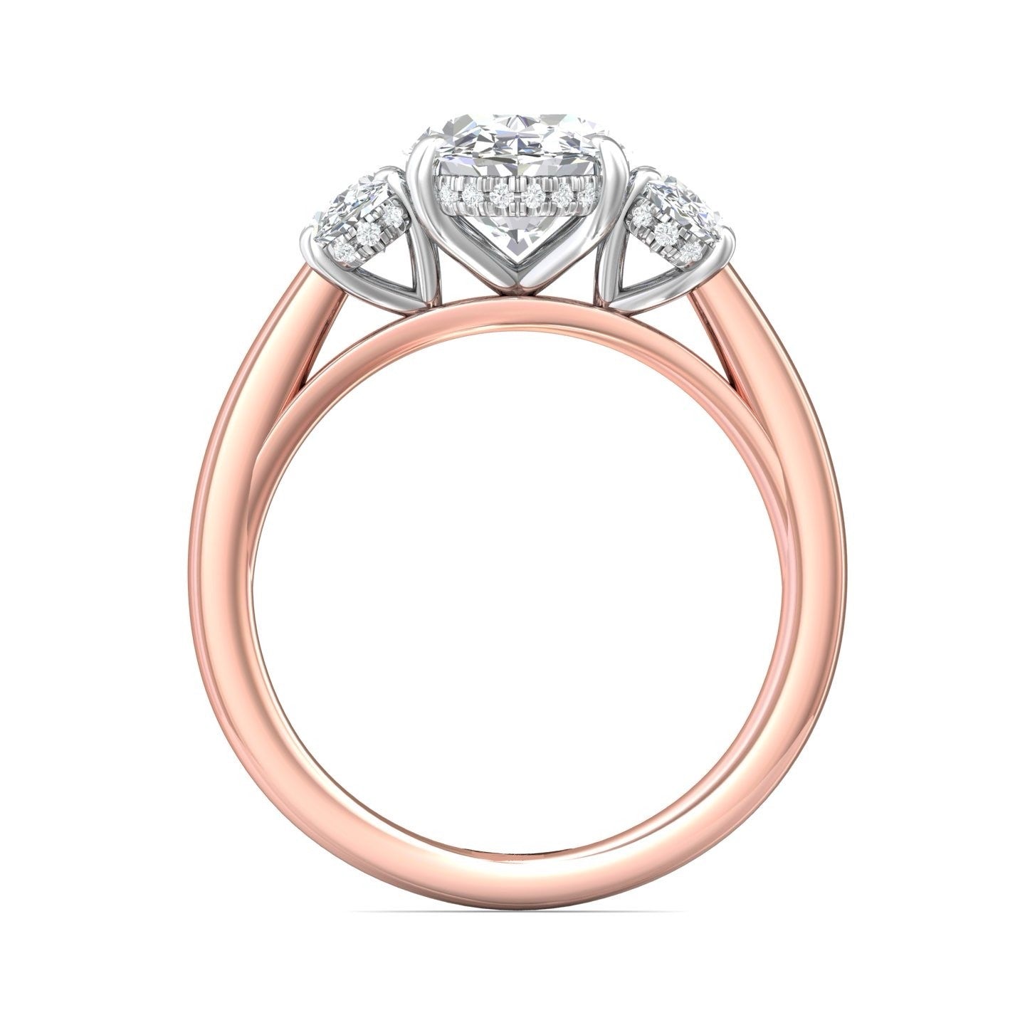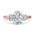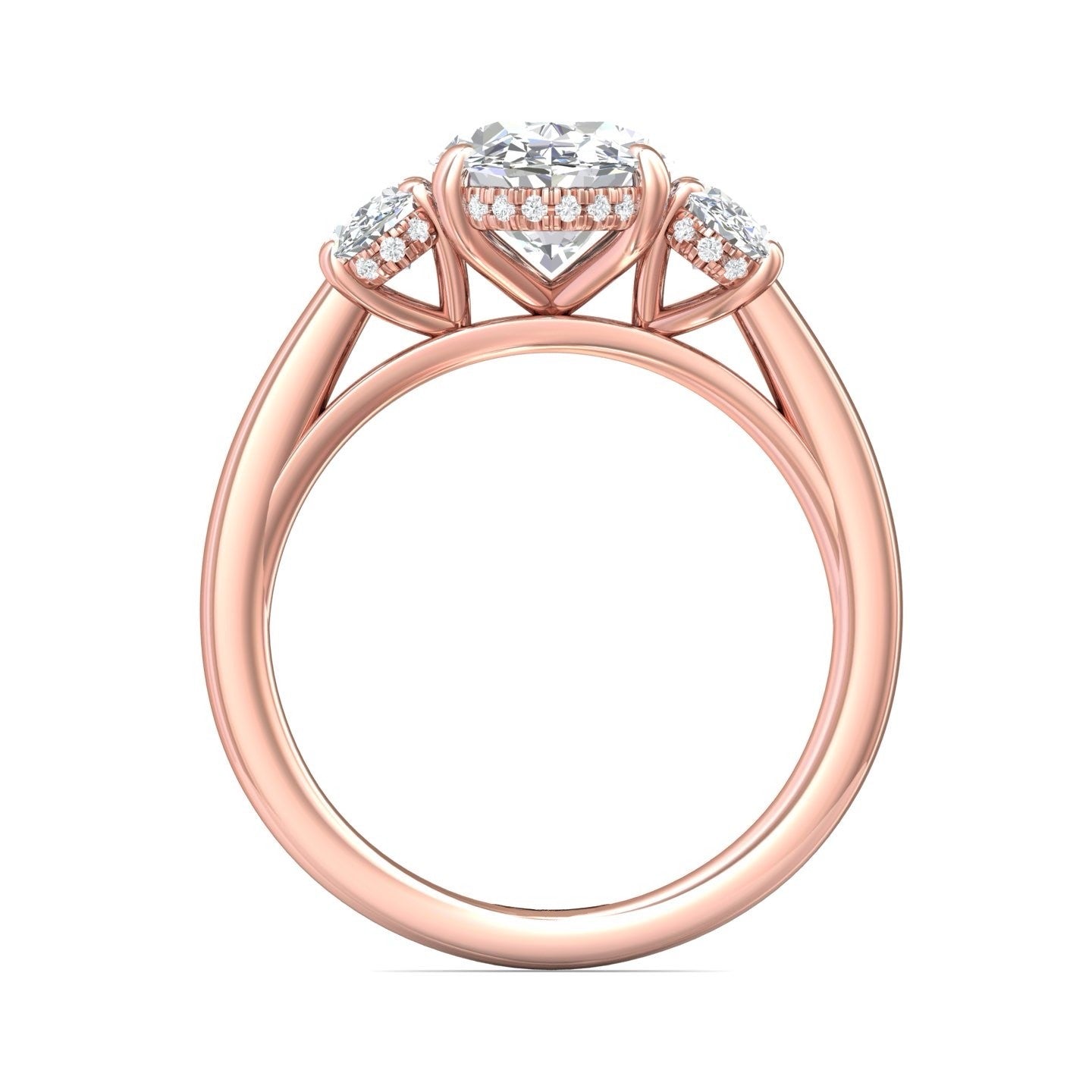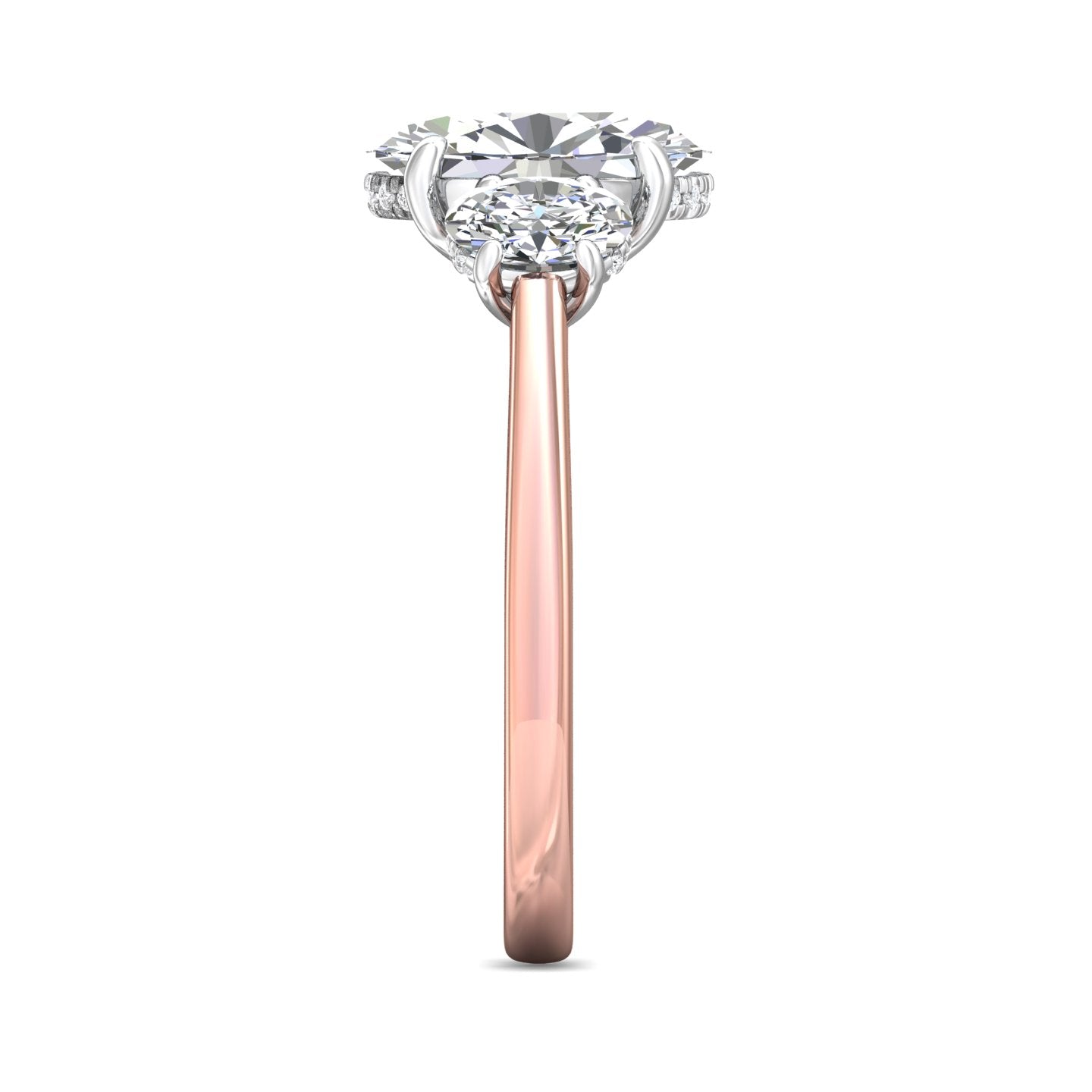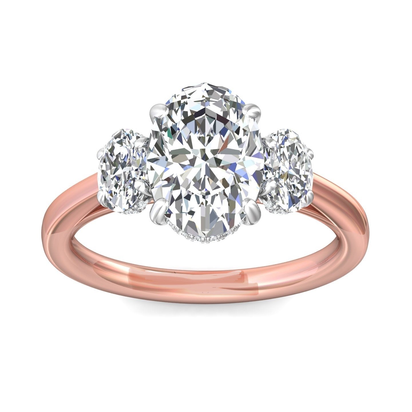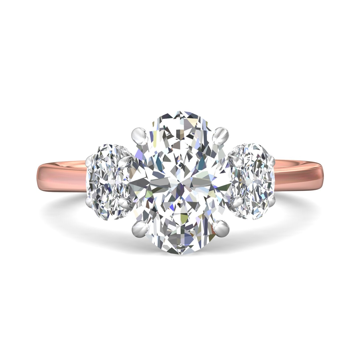Timeless design and refined details come together to create this harmonious and balanced of this engagement ring crowned with a brilliant center stone framed by two oval diamonds.