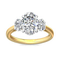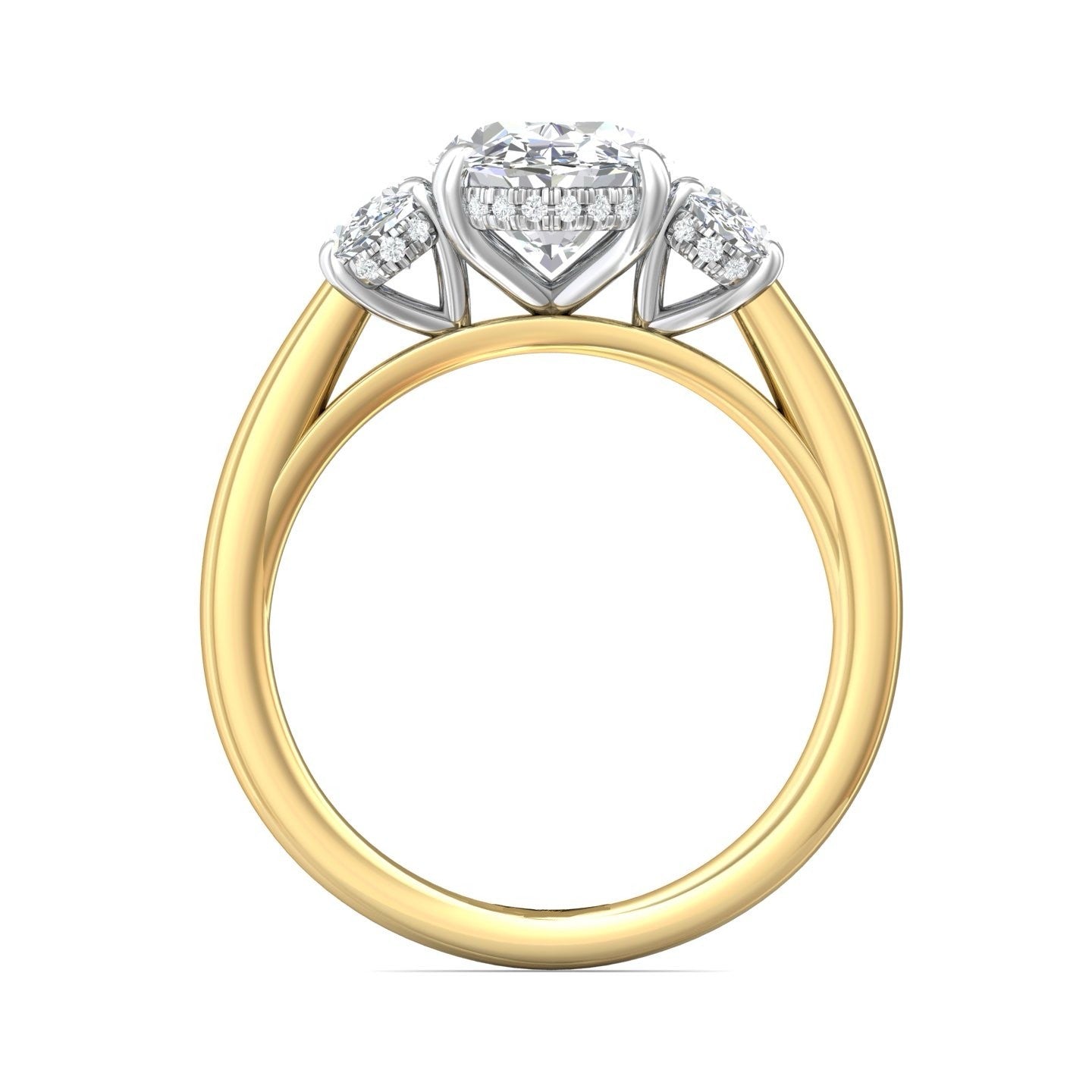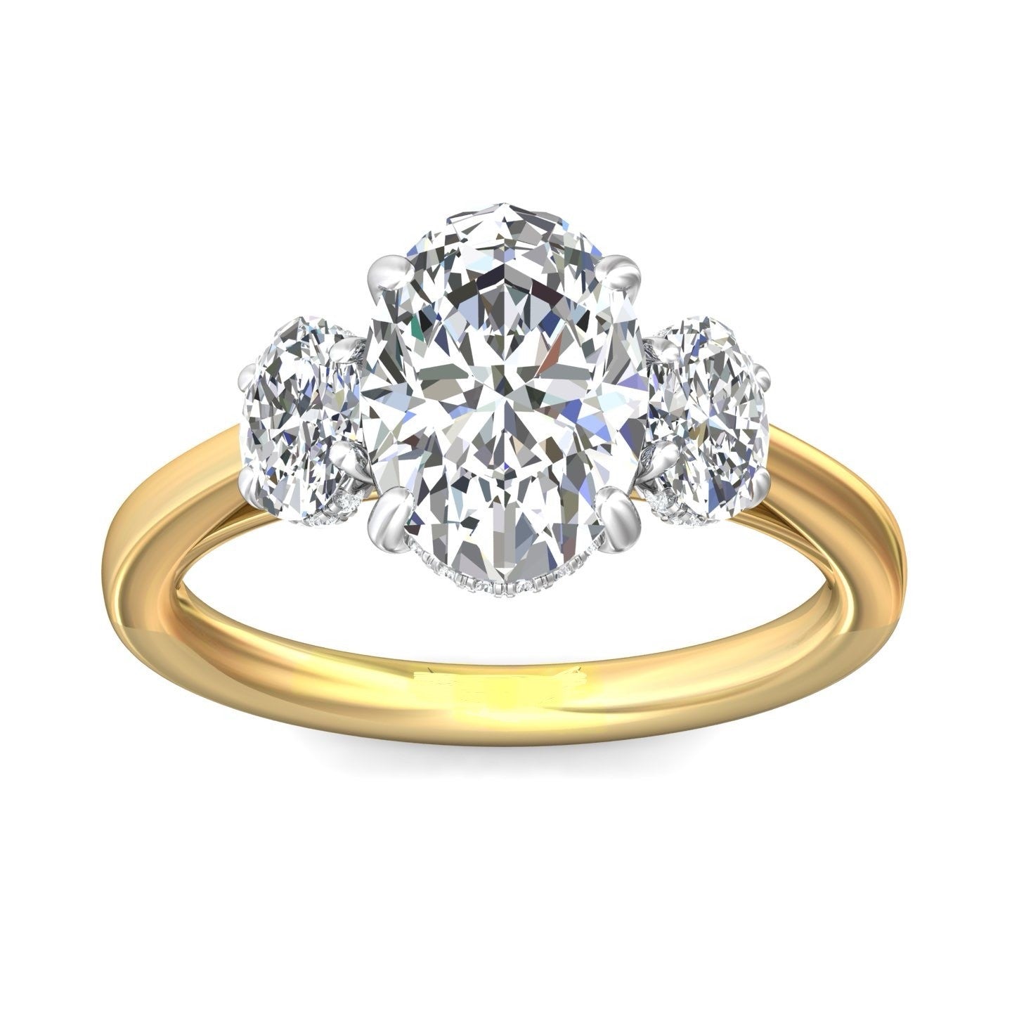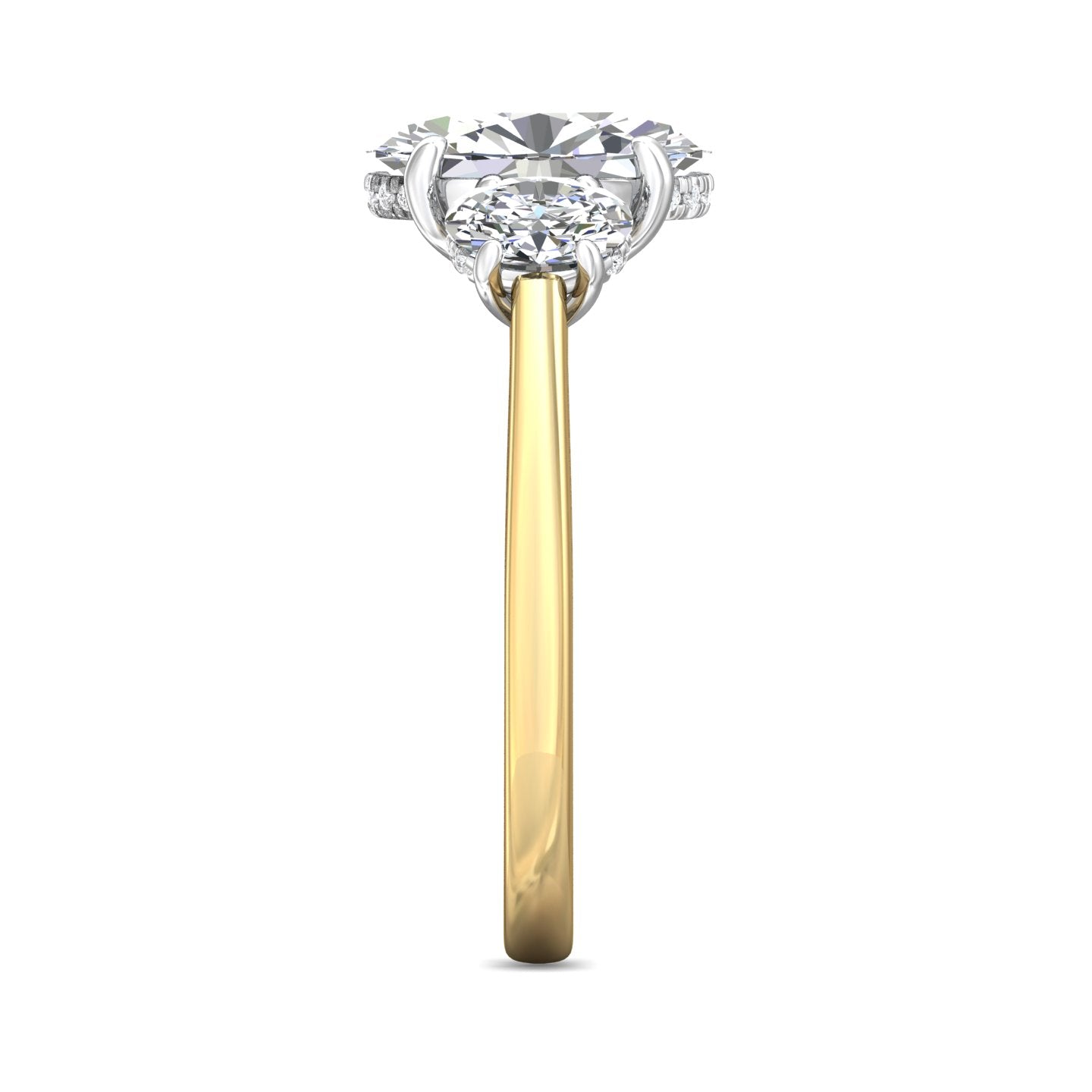 Timeless design and refined details come together to create this harmonious and balanced of this engagement ring crowned with a brilliant center stone framed by two oval diamonds.