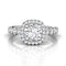 This 18k white gold vintage-inspired ring features a cushion halo of pave diamonds surrounding your centre diamond, as well as trails of diamonds down each side of the shank.