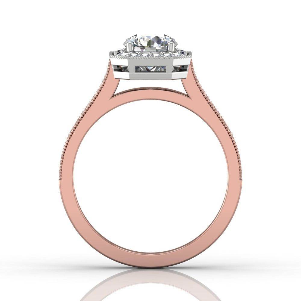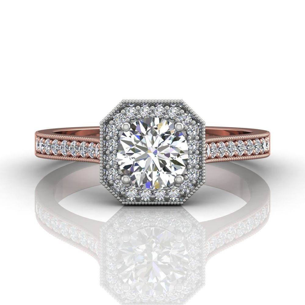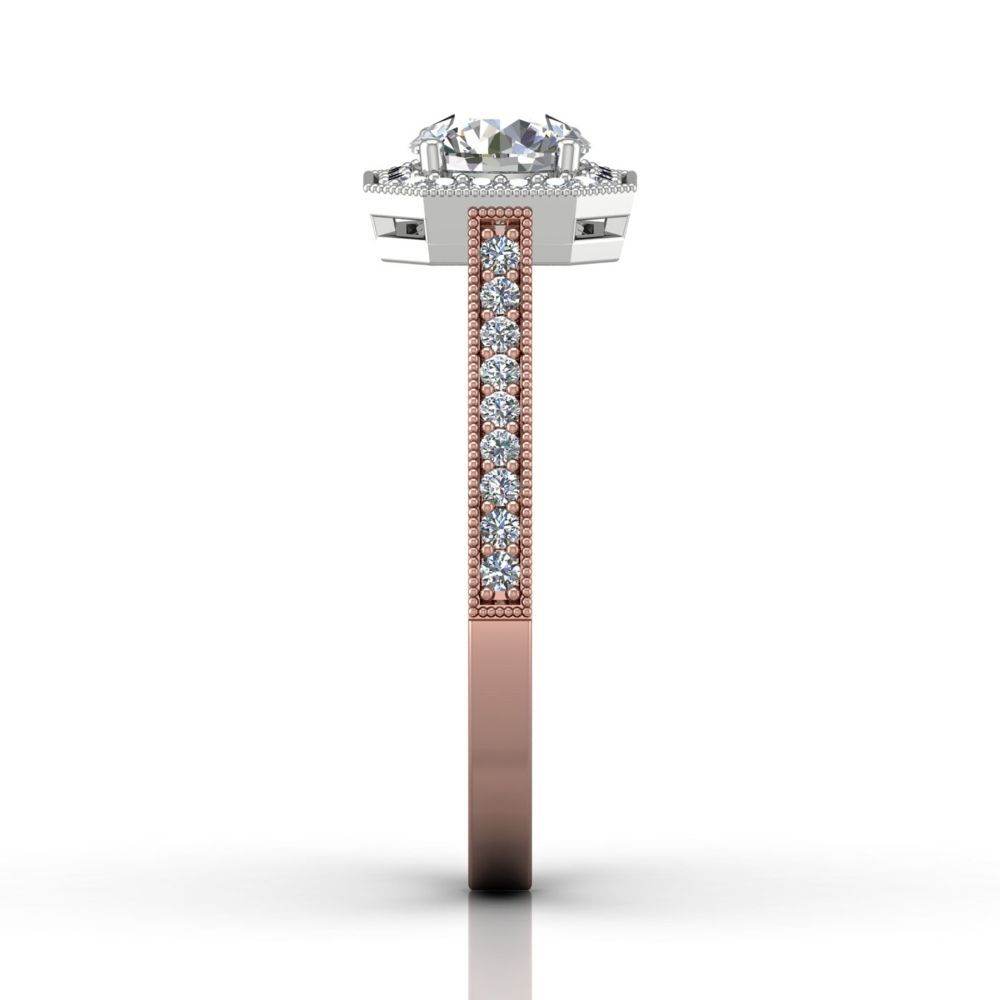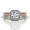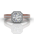Beautifully crafted and made to order, this diamond engagement ring features stunning vintage details that include a square halo set with thirty-eight round-cut diamonds in a Micro-pave Milgrain setting.