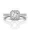 Beautifully crafted and made to order, this diamond engagement ring features stunning vintage details that include a square halo set with thirty-eight round-cut diamonds in a Micro-pave Milgrain setting.