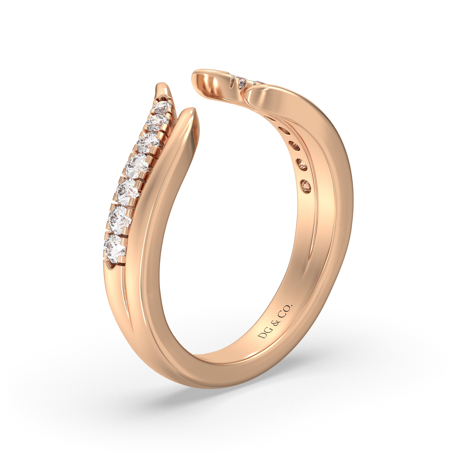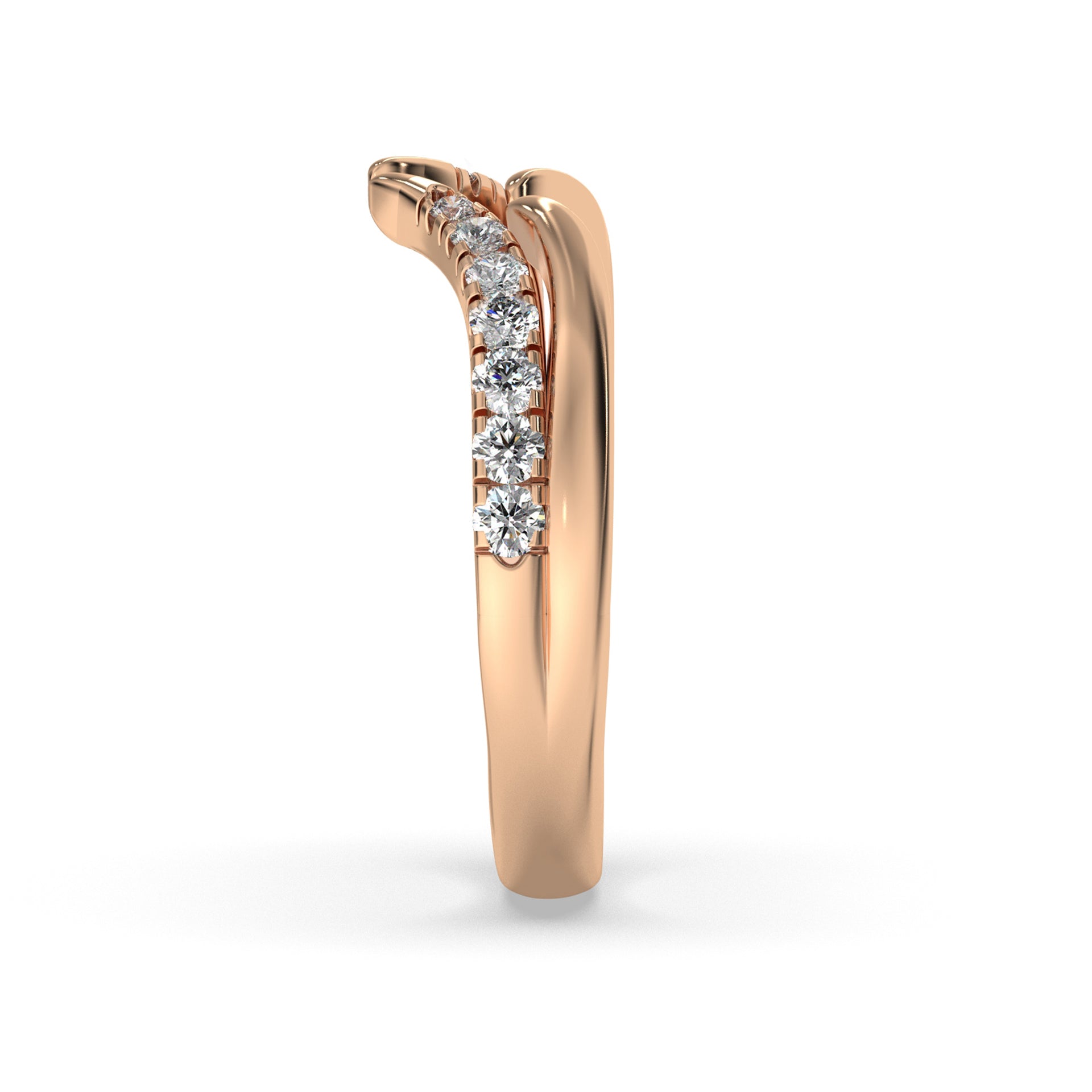 This diamond ring is the perfect enhancement for matching engagement rings. Slide your favorite diamond or gemstone ring into this wing curved diamond ring .