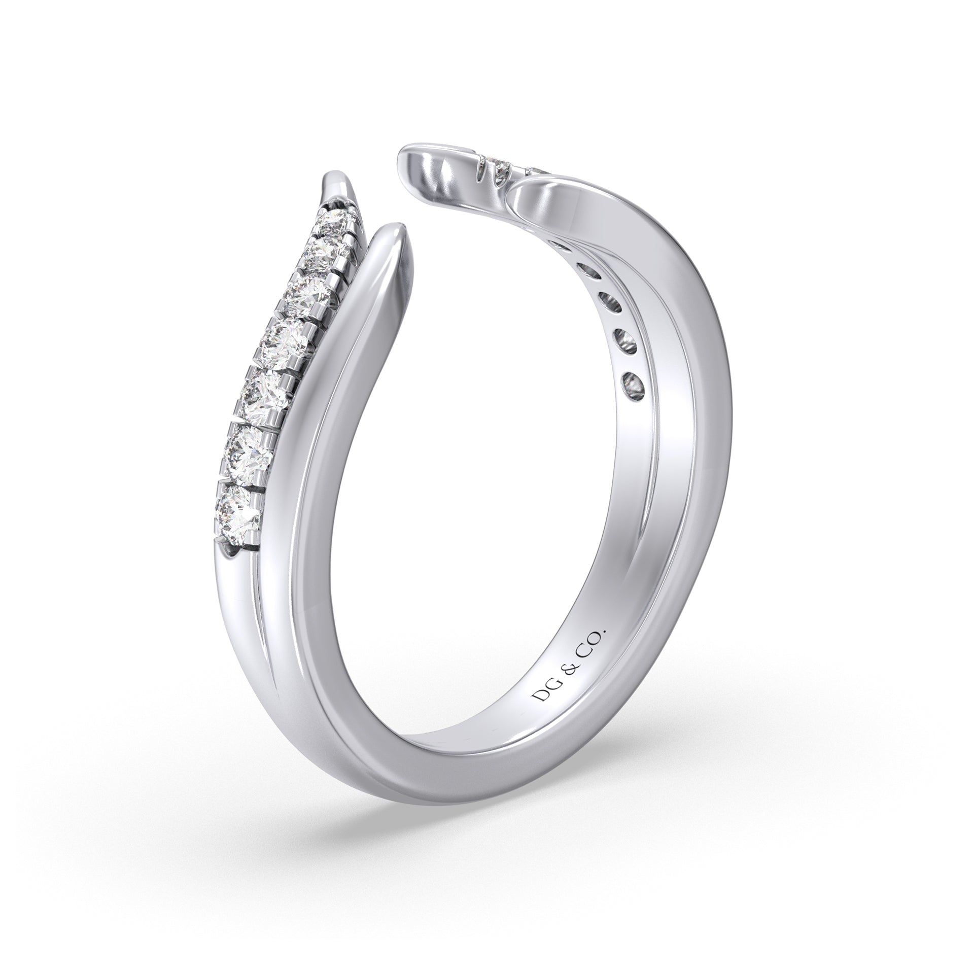 This diamond ring is the perfect enhancement for matching engagement rings. Slide your favorite diamond or gemstone ring into this wing curved diamond ring .